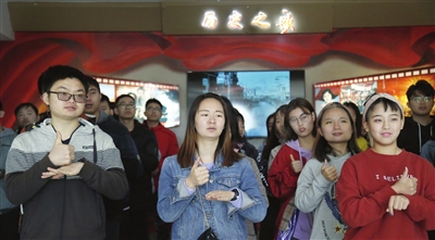 学生们边参观边交流 3月21日,西青区李七庄街王兰庄花园内天津一二·九学生抗日救亡纪念馆,小院里色彩斑斓的花儿争相伸出栅栏。上午10点半,一辆蓝色大客车停在门前,走下来一群年轻人,他们相互用手快速地比划着,嘴里不时发出“啊啊”的声音。 这是一群来自天津理工大学聋人工学院的聋人大学生,他们还在回味着前一天去周恩来邓颖超纪念馆的所见所“闻”,兴致盎然。 只有老师走心,学生才会入心。针对聋哑人视觉感官发达的特点,天津理工大学聋人工学院将思政课堂搬到了周恩来邓颖超纪念馆、平津战役纪念馆、天津一二·九学生抗日救亡纪念馆等校外场馆。结合当下社会热点,通过图片、视频、实物等史料,生动地向青年学生们展现了我们党、国家和人民的奋斗历程,传递团结、奉献的精神;将这些在民族和国家奋进之路上前赴后继的人物故事娓娓道来,展现他们荡气回肠的民族大义以及家庭温情。 这堂课,也是该院学生们的团日活动,以此教育团结青年团员,让他们通过参观学习增长见识,激发内在的动力,将来为社会创造更大的价值。 |