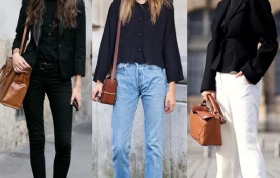 黑色与棕色的组合,是比较常见的色彩搭配。全身黑色的look,搭配棕色包包,整体造型有一些英伦范的味道;黑色衬衫+蓝色牛仔裤,搭配棕色包包,很简约的一套日常搭配;西装外套+白色裤子,搭配棕色包包,又会有优雅知性、简约干练的范。