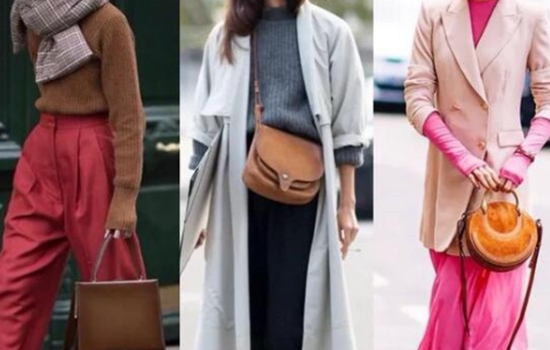 棕色包包和红色的衣服搭配,想着就感觉不太搭调。但是棕色和红色都是暖色,因此一向难搞的鲜艳大红,跟低调的棕放在一起完全和谐,不会互抢风头。尤其是明度较低、色彩饱和度高的红色系,还是很好看的,可以尝试一下。