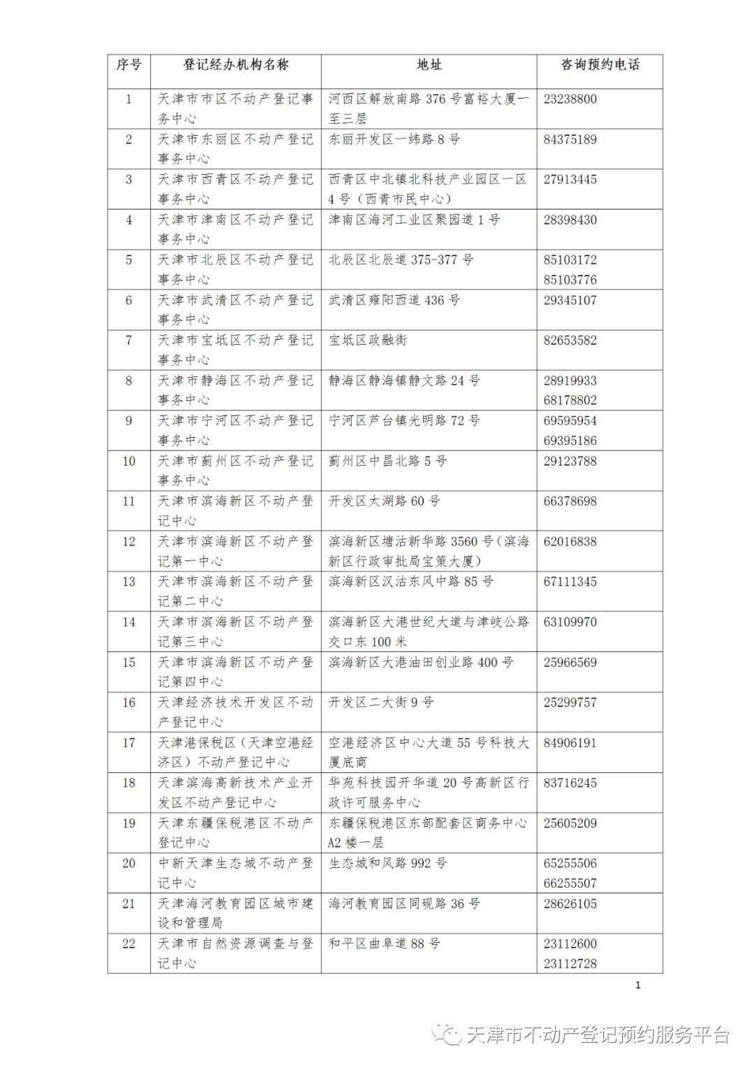 微信预约请关注“天津市不动产登记预约服务平台”微信公众号,可24小时预约;各不动产登记经办机构电话预约时间为:工作日上午9:00-12:00;下午:14:00-17:00。各不动产登记经办机构咨询预约电话: