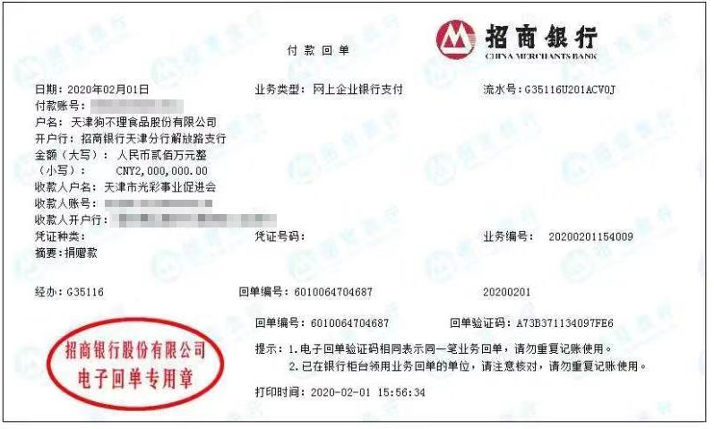 狗不理集团、天津同仁堂集团、宏仁堂三家老字号企业捐款600万元 ![]() ![]()