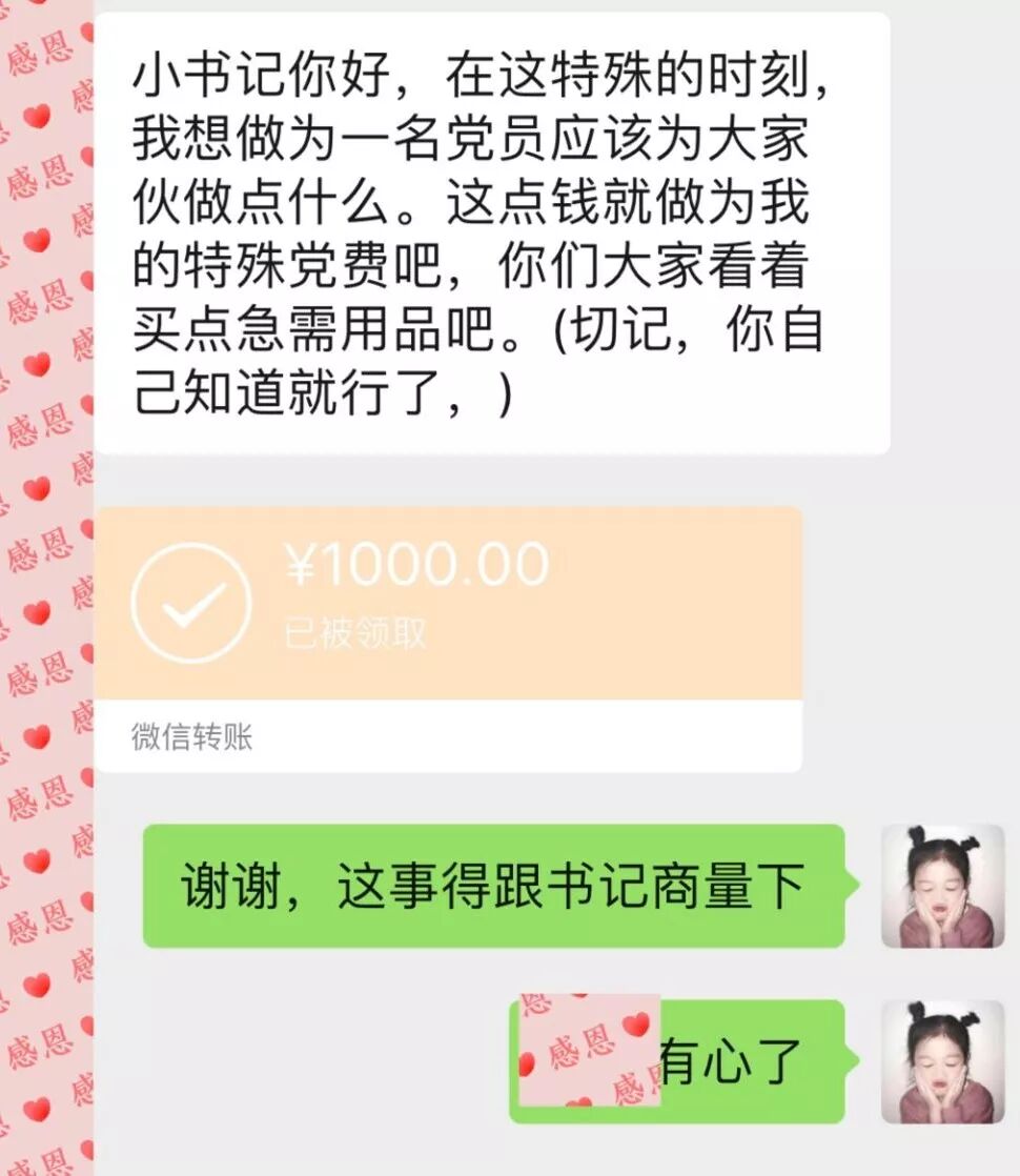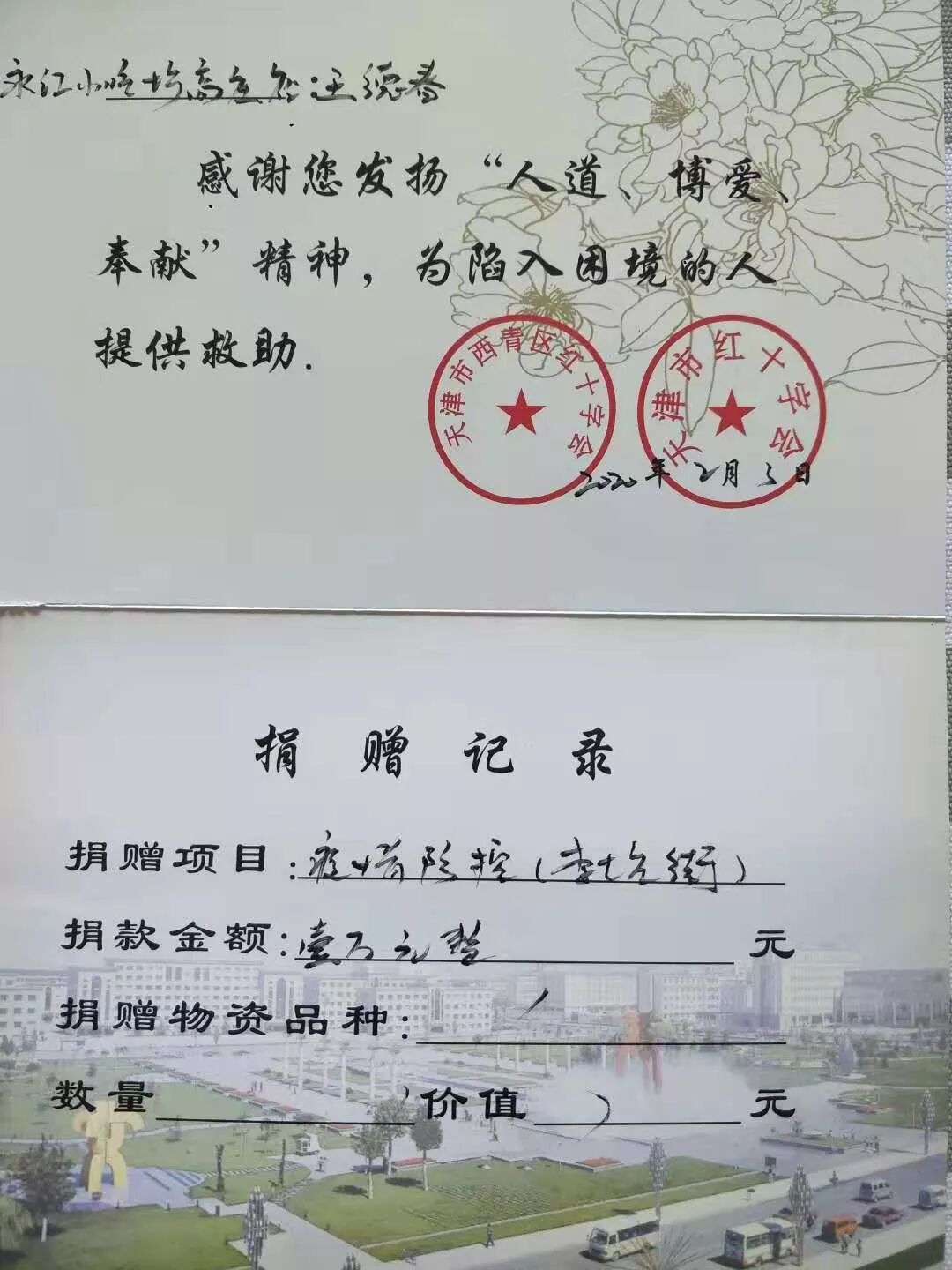 为抗击疫情,李七庄街众志成城,筑起一道道防疫关卡;为了抗击疫情,李七庄人心手相连,接续传递着一份份爱心。愿以微光映大爱,李七庄街爱心接力在继续…… 辛院村一位不愿留名的党员为防疫工作捐款1000元整,他说:“在这特殊的时刻,作为一名党员我也应该为大家伙做点什么,希望这些钱可以对防疫工作起到作用。” ![]() 高庄子村村民王德春是永红小吃坊的负责人,他带领员工6人奉献爱心,共计捐款壹万元整交给西青区红十字会,并转交李七庄街用于防控疫情使用。 ![]() 科诺口腔张医生为程村村委会捐赠了600斤消毒液,用于进行防疫消杀,目前已将消毒液分发到各个小区。 ![]() 防疫仍在进行、爱心仍在传递。在这场防疫阻击战中,有太多太多的辛苦付出,更有更多地温暖和感动。李七庄人在疫情面前坚定无比的决胜信心和温暖你我的爱心,我们坚信,一切都会好的!