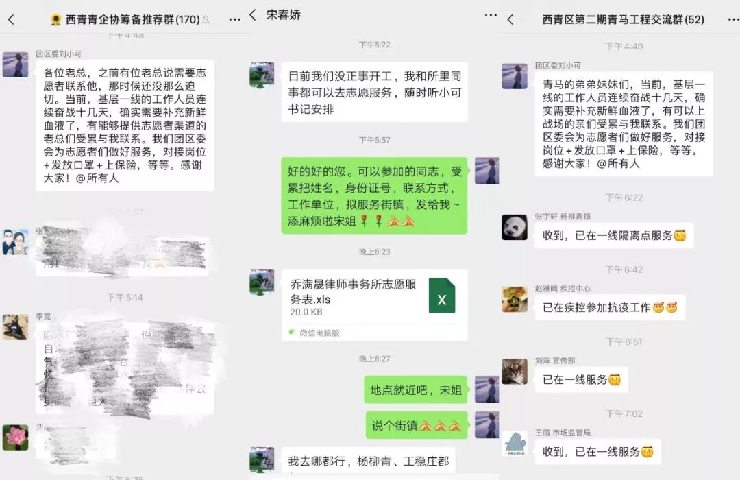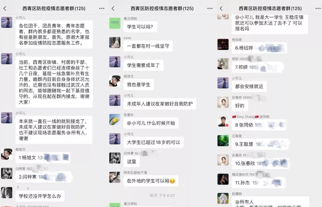 生命重于泰山,疫情就是命令,防控就是责任。新型冠状病毒感染的肺炎疫情来势汹汹,打赢这场没有硝烟的战争,是当前最重要最迫切的工作。为持续补充基层青年志愿者力量,贯彻落实西青区委、区政府和天津团市委部署要求,西青团区委在线上现下广泛组织发动共青团员到村(社区)报到的同时,经线上后台报名、各类微信群发动等方式,又招募青年志愿者133人。团区委第一时间通过短信、电话等方式与报名志愿者取得联系,逐一了解报名志愿者的个人身体情况、特长和志愿服务意愿,经分析汇总,第一时间建立了微信群,组成了122名青年志愿者的突击队伍。 ![]() ![]() ![]() ![]() 团区委在微信群中号召大家积极参与基层一线志愿服务工作,得到了快速响应,大家纷纷报名、主动请战,并表达了希望能够尽快到基层一线参与疫情防控工作的迫切愿望。经过一晚的沟通协调,2月6日上午,共计38名线上报名青年志愿者,作为先遣队,已经第一时间全部到居住地所在街镇团委报到,接受专业、系统培训后陆续上岗,有序参与疫情防控各项工作。 |