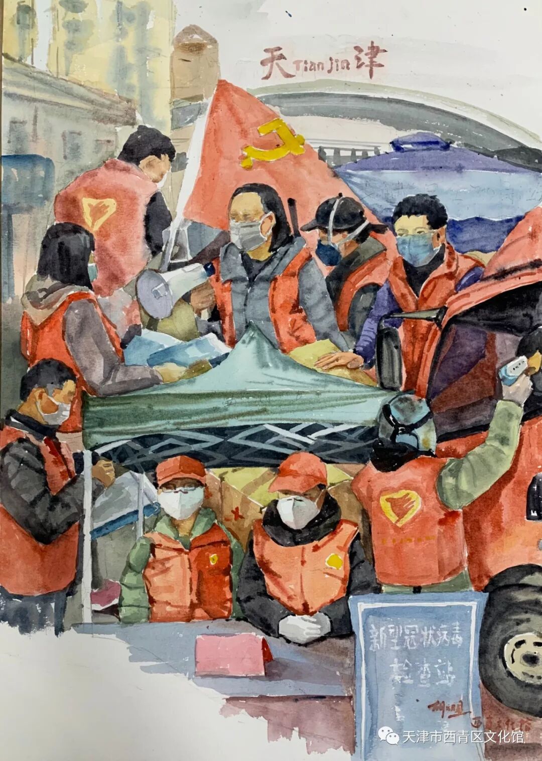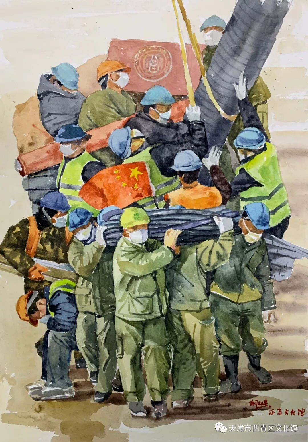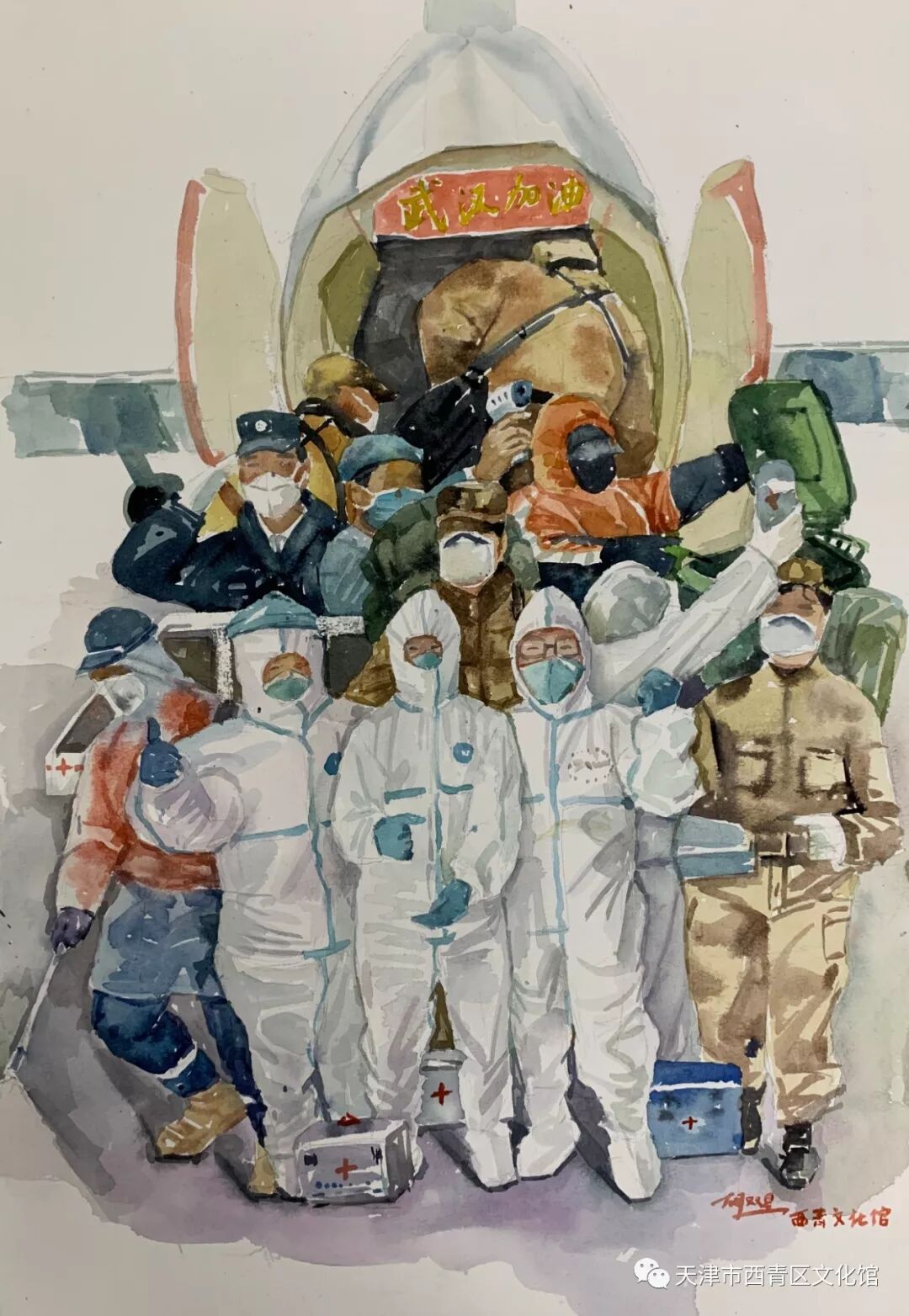 疫情当前,牵动了亿万国人的心。为鼓舞士气,西青区文化馆美术干部刘晴、胡双星创作了系列作品,致敬奋战在一线的医务人员以及各行各业为防控疫情无私奉献的工作人员,感谢他们为疫情防控作出的贡献。 《中国速度之火神山建成记》 ![]() 作者:刘晴 (布面油画) 在疫情面前中国人民决不屈服, 大家以最饱满的精神去迎接战斗,舍小家为大家。 一声命下,无数无名志愿者从各地来到武汉火神山, 十天建成一个医院, 这样的奇迹只会在中国出现! 这是中国速度,这是中国精神! 这是亿万中国人民对祖国的爱,对同胞的情! 《众志成城》 ![]() 作者:胡双星 (水彩) 《向火神山医院建设者致敬》 ![]() 作者:胡双星 (水彩) 《向抗疫志愿者致敬》 ![]() 作者:胡双星 (水彩) 疫情爆发已经20多天,在这段危难的时间里 我看到了祖国的伟大!看到了人民的伟大! 就像武汉宣传片里所说:“爱和希望比病毒蔓延的更快”。 各行各业的人们在用生命保护着我们的生命。 做为一名艺术工作者, 我也希望能用这些正能量的作品为我们的祖国、为我们的人民鼓舞士气。 众志成城,让我们团结起来打赢这场“战役”! ![]() ![]() 刘晴 西青文化馆美术干部 馆员 天津美术家协会会员 ![]() 胡双星 毕业于天津美术学院 研究生学历 西青区文化馆美术干部 |