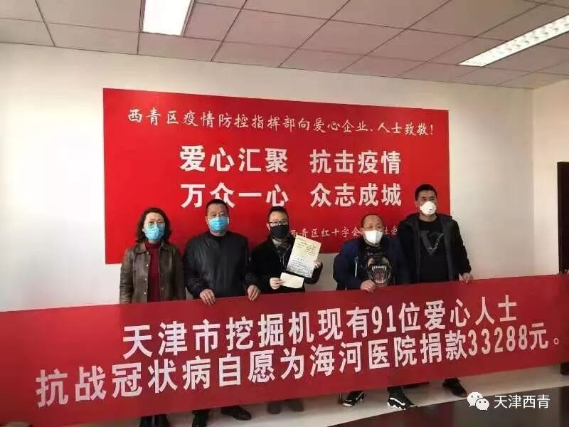 西青区新型冠状病毒疫情防控工作接受社会捐赠情况公示 接收捐款情况 截至2020年2月7日,网上转帐截至2020年2月6日,西青区新型冠状病毒疫情防控指挥部社会捐助组共接受企业、社团共72家捐款,共计863.435万元;接收个人捐款264笔,共计99.4533万元,累计:962.8883万元。现公示如下: ![]() 企业、社团捐款情况 (按捐款时间顺序排列) 天津市惠林农产品种植专业合作社 1万元 天津市依依卫生用品股份有限公司 100万元 天津市新宇彩板有限公司 200万元 天津市西青区建来面食加工厂 1万元 天津金海天精密模具股份有限公司 5 万元 天津市五洲机电设备安装有限公司 1万元 天津市小李烧鸡食品有限公司 10 万元 四川益生园艺工程有限责任公司 50 万元 天津市红联橡胶制品有限公司 20万元 天津市宇凡启航人力资源有限公司 5万元 基督教西青分教 3.3万元 稳能(天津)能源环保科技有限公司 10万元 天津瑞东建筑工程有限公司 1万元 天津国燃新能源科技有限公司 1万元 天津市状元壹佰培训学校有限公司 1万元 天津仁义实业有限公司 1万元 宝岛(天津)智能科技有限公司 0.8万元 兴宇伟业(天津)科技有限公司 0.5万元 天津市青创空间科技企业孵化器有限公司 0.21万元 天津羊大爷餐饮管理有限公司 5万元 永红小吃坊高庄店 1万元 天津市康婷生物集团有限公司 10万元 中意联动科技(天津)有限公司 0.1万元 中意联动科技(天津)有限公司职工 0.18万元 天津群胜律师事务所 0.05万元 天津市双利源物业服务有限公司西青分公司 5万元 津市账房先生企业管理咨询有限公司 0.05万元 天津国环环境科技发展有限公司 0.05万元 海程新材料科技有限公司 0.3万元 宝岛车业集团有限公司 0.2万元 重庆凯弘工程咨询有限公司天津分公司 0.15万元 天津天和逸品装饰工程有限公司 0.05万元 天津市宏护科技有限公司 0.08万元 天津市煜鑫诚科技有限公司 0.03万元 天津市华瑞环境卫生管理有限公司 1万元 西青区颐康养老院 0.1万元 天津市西青区勇康健医药销售有限公司 1万元 天津市百得纸业有限公司 10万元 天津聚贤楼宾馆 5 万元 天津市威龙塑胶制品有限公司 1万元 天津市昱隆泰再生资源环保处理有限公司 5万元 天津凌奥创意产业园集团有限公司 20万元 天津市威匡电气设备有限公司 5万元 天津仁义实业有限公司 20万元 天津仁义科技发展有限公司 5万元 中国共产党天津市西青区张家窝镇董庄子村总支部委员会 2.56万元 天津市新宇彩板有限公司 30万元 日宝(天津)塑料有限公司 10万元 戈尔电梯(天津)有限公司 20万元 天津市东祥五金制造股份有限公司 1万元 民革西青工委 1.325万元 西青区王稳庄新丽华公司党员和干部 0.83万元 西青区王稳庄新丽华公司 10万元 天津宏仁堂药业有限公司 0.2万元 天津信志达密封科技有限公司 3万元 天津信志达物流有限公司 3万元 天津市兴晟全科技有限公司 0.5万元 天津市西青区辛口镇田园风情家庭农场 0.1万元 天津金盛昱塑料制品科技股份有限公司 2万元 天津市昌顺模具厂 3万元 韩国 SPC巴黎贝甜 50万元 天津市津津药业有限公司 20万元 天津市众为本物业服务有限责任公司 2万元 天津焱恒保洁服务有限公司 2万元 天津市津泽青诚企业管理咨询有限公司 1万元 致公党西青区基层委员会 1.27万元 天津市兴晟全科技有限公司 0.5万元 天津国泰中能售电有限公司 30万元 天津市新欣生物技术研发中心 50万元 天津市西青区东风火镀厂 10万元 天津太平洋制药有限公司 100万元 天津市德广信科技有限公司 2万元 个人捐款名单 (按捐款时间顺序排列) 戴跃全 王宝珠 蒋观龙 秦光安 刘玉凤 张忠琴 商依珊 宋泽明 周永来 刘海英 李 虎 李玉雪 王亚宁 刘 赫 李 娜 张首领 张子成 李建来 王文政 王世军 王世玉 李德洋 安玉立 郭芝振 李晓艳 郝继宸 纪克让 张天楠 宋春娇 只 勇 尹山虎 陈寅戌 高 伍 爱心人士张树明 刘彩军 爱心人士黄 炎 万宗谦 俞彬文 胡志军 孙美玲 陈雨霏 陈雨婷 张绍新 刘兴妍 李 芹 高华松 唐 伟 王亚宁 张汉卿 汪玮玮 杨 旭 付宏宇 张嘉林 陈柯君 翟忠伟 庞禄厚 嵇境䶮 解廷博 秦德帅 张文亮 孙 浩 赵泽洋 李 政 只莹莹 戴 亮 房振雷 王明飞 高姗姗 李亚南 雷伟英 梁 兴 唐皇哉 蔡浩欣 李 健 石彦峰 曹 飞 刘东昊 王悦驰 张永顺 杨 磊 薛进峰 侯玉雷 王竣达 刘子英 王 镭 王凤勇 李 克 许文杰 孙 毅 陈 昊 王竣达 张庆柱 元军英 李 晨 李焕婷 李佳瑞 石卓奇(石磊) 王 鹏 刘良志 王莹莹 王海军 王红刚 王学来 李桂芳 方增会 谢英莲 刘丽伟 孙 峰 张 莉 宋良万 孙 静 张海波 张东亮 康录彦 高双乐 于代远 孙于皓 王宏利 王宇龙 周朝辉 崔德营 黄 毅 张 莹 王琨博 李胜军 赵恩峰 张金潮 徐加兰 万福香 孙家香 周 辉 张玉凤 段金香 张德安 徐昌珍 刘致凤 顾文华 刘艳萍 陈文雄 王俊刚 吴鹏飞 金光彦 孙少霞 刘润杰 于连惠 张兆惠 张 璐 刘 伟 李 晶 董淑芬 冯怀霞 孙学珍 胡宝珍 刘俊铭 韩玉香 付忠云 柳春芬 陈宝玲 刘春煦 卢俊嶙 李 松 郭家艳 王丽星 王瑞乾 刘子岩 刘 涛 张晓东 区人大机关工会会员及妇女干部24人 悠 悠 张睿珊 韩宝海 张伊帆 王雨纯 臧玉侠 李 雁 高恩民 段秀兰 周连伟 赵井田 杨雅淇 王红梅 杨雅翔 谢广玲 房贵英 吴建旺 李文丽 刘金环 高恩民 西青区李七庄街雅居花园小区全体业主 张家窝镇妇女联合会39人 张家窝镇妇女联合会13人 王维秀 