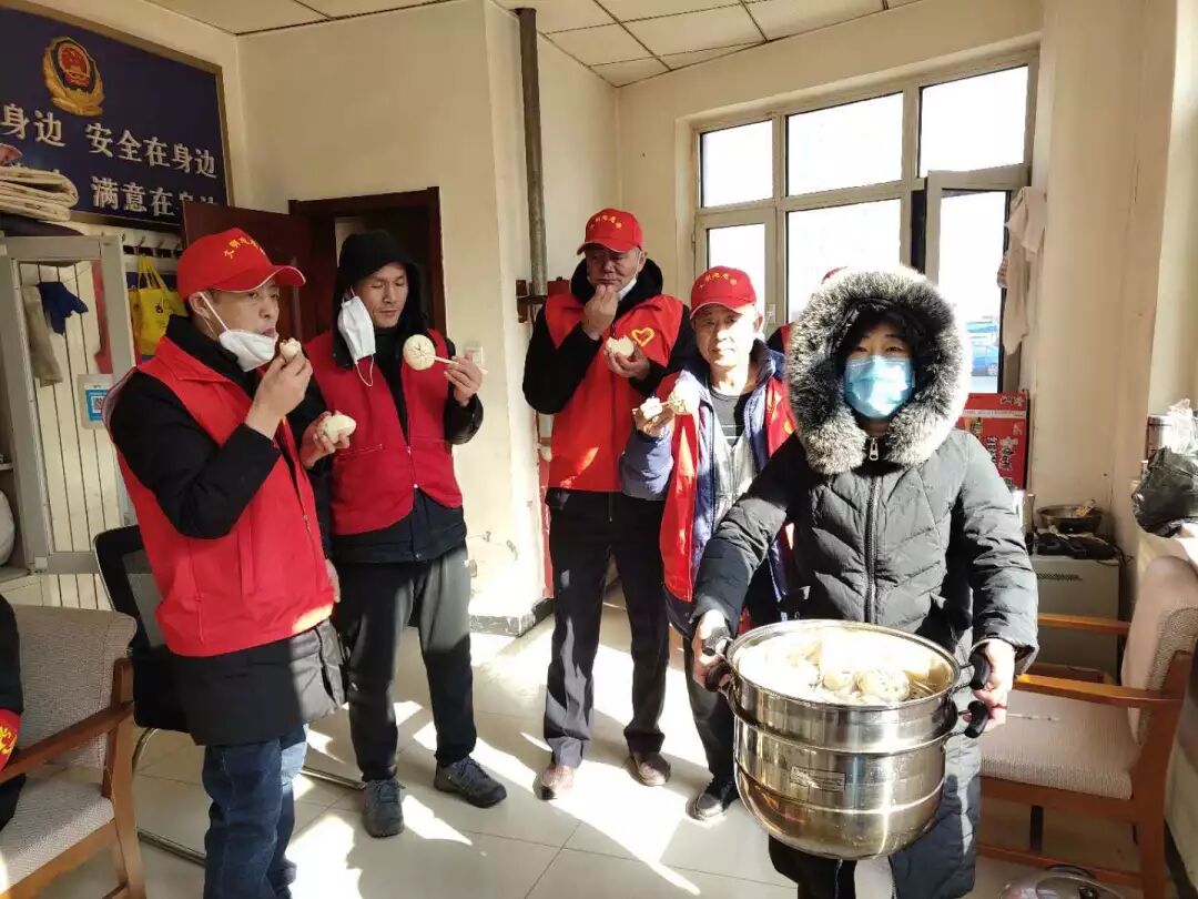 看到防疫一线的“站岗人”日夜排查,守护着大家的安全,各界爱心人士送来暖贴、食品、午饭、口罩,深暖人心。从起初,超市给工作人员送饮用水、送方便面,到小饭馆给大伙儿送盒饭、送热汤,再到正月十五元宵节领导干部送来慰问品、煮元宵,一线的南口“站岗人”在战“疫”中感受温暖,也在战“疫”中更加勇敢。当志愿者韩春良的妻子站出来为“站岗人”义务做饭的时候,再次让大家感受到了南口村老百姓的一团热火和无尽爱心,看着热汤热饭和暖心大包子,“站岗人”们心里有说不出的感动。