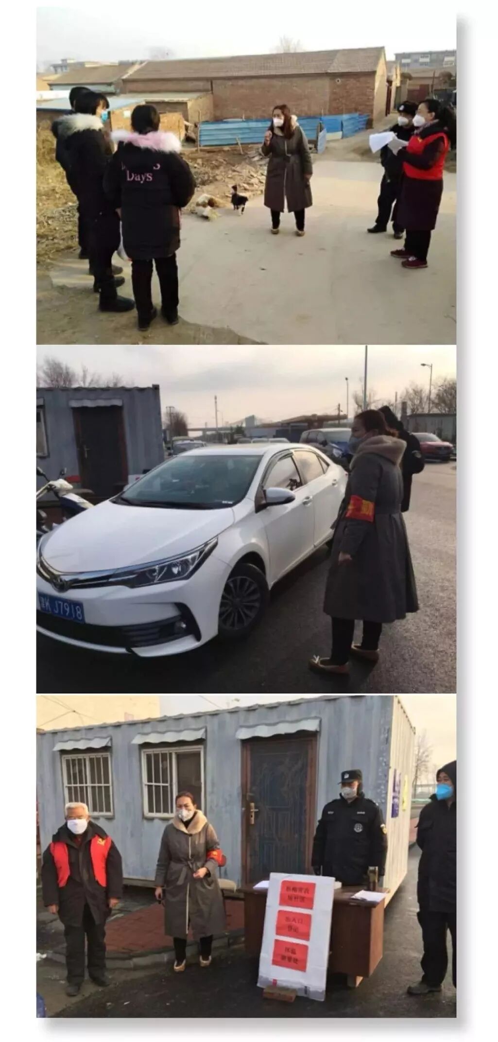 在众多工作人员中,有一支特殊的小分队是由3名社区返聘党员组成的,他们是吴敏刚、魏洁和施玉红。他们在收到党组织的号召后带病返岗,始终任劳任怨,坚守在第一战线,成为了社区抗击新冠肺炎疫情的最美逆行者。这三位平均年龄近60岁的返聘干部从大年30就坚守岗位,带头入户排查宣传,管控点位昼夜值守。杨柳青农场社区属于待拆迁片,片区较大片区内平房较多,三位干部每天要徒步5里地入户进行登记宣传。他们把节后从外地尤其是武汉打工归来的居民作为重点排查对象,劝导他们少外出,不聚会,不参加红白喜事等集体活动。“大家在家里面要注意通风,出门戴上口罩,过年期间不要聚亲访友了。”这是3位老干部入户时说得最多的话。