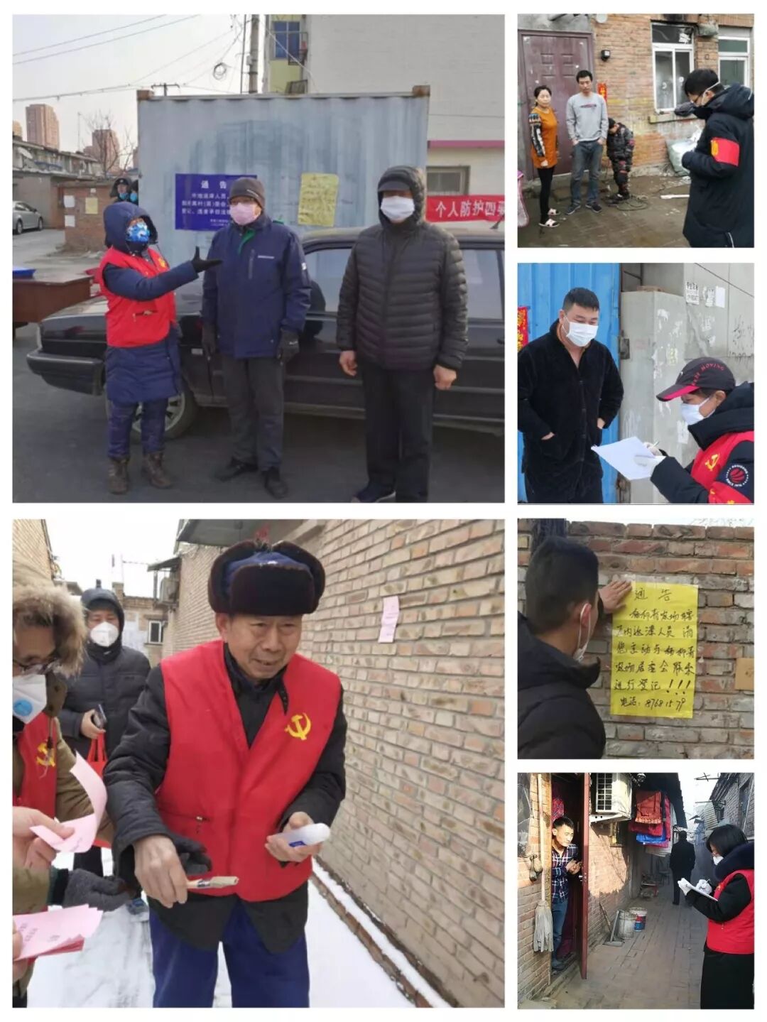 在杨柳青农场社区,还活跃着许许多多的党员,他们心连心,手牵手,将这片地区守卫得严严实实。79岁高龄的党员志愿者范马主动要求参加防控巡逻队伍,坚守在排查疫情的第一线;75岁的党员志愿者陈淳心脏做有2个支架,身体抱恙的他依旧主动请缨上街张贴防疫宣传资料;69岁的党员志愿者张兰香坚持与年轻干部一起走街串巷进行义务宣传;退伍军人党员志愿者陈文配合社区工作者走访千家,逐一进行排查;社区党员干部张秋英不顾瘫痪在床的年迈母亲,始终坚守在岗位上;社区党员干部史荣芳不顾年幼的女儿,与同为社区工作者的丈夫并肩战斗在抗击疫情的第一线;已经写好入党申请书却因为疫情迟迟未能交到党组织的社区干部马士杰在接受肠梗阻治疗后立即投入到防疫工作中,带病坚守岗位……