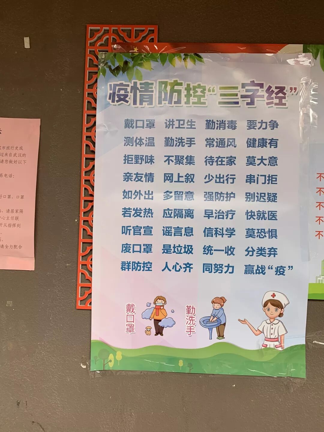 赤龙南街各社区强化宣传疫情防治,张贴居家消毒明白纸、发热就医注意事项、发热就医门诊信息、疫情防控“三字经”等宣传海报,全方位开展宣传,呼吁居民停止聚集,做好自我防护,共同抗击疫情。