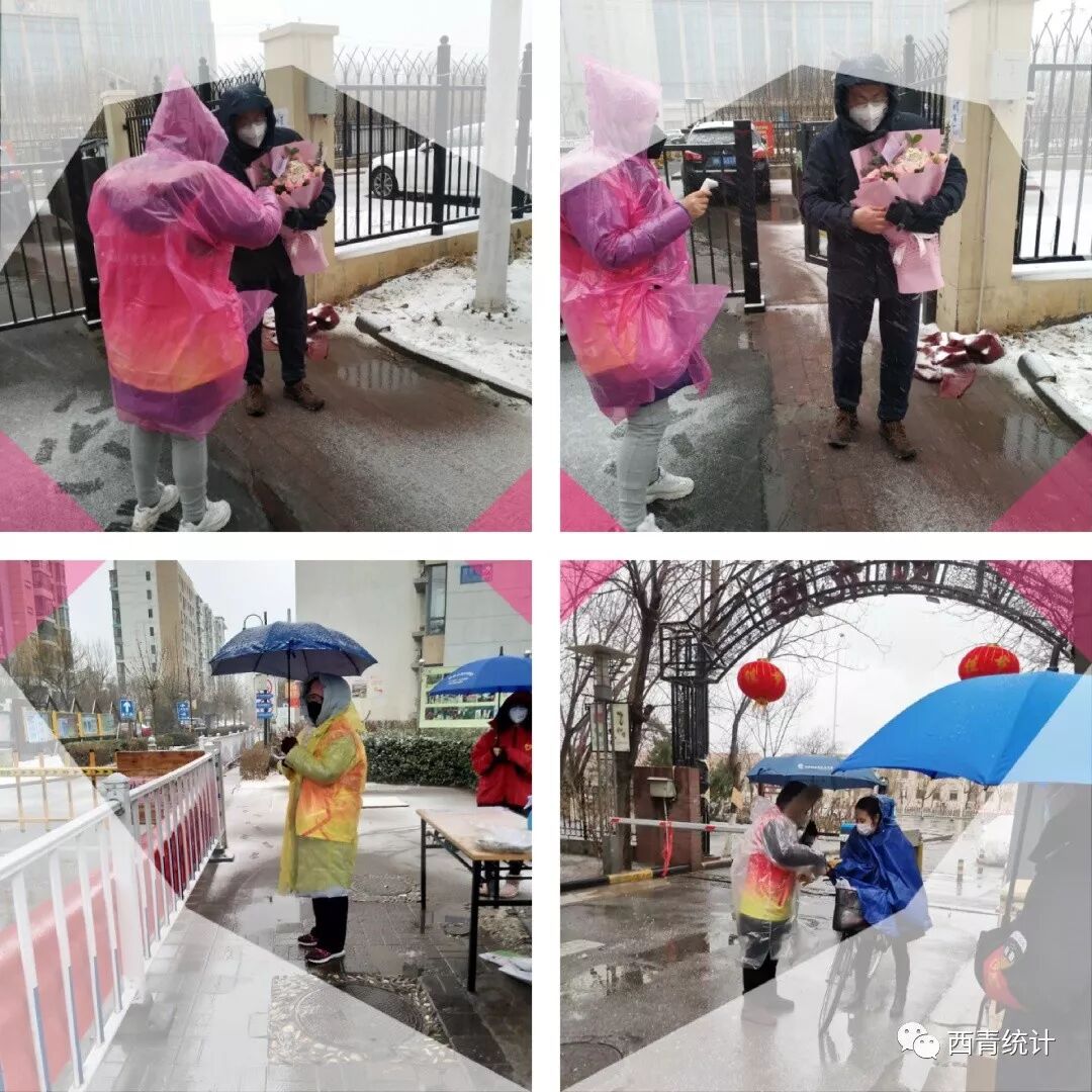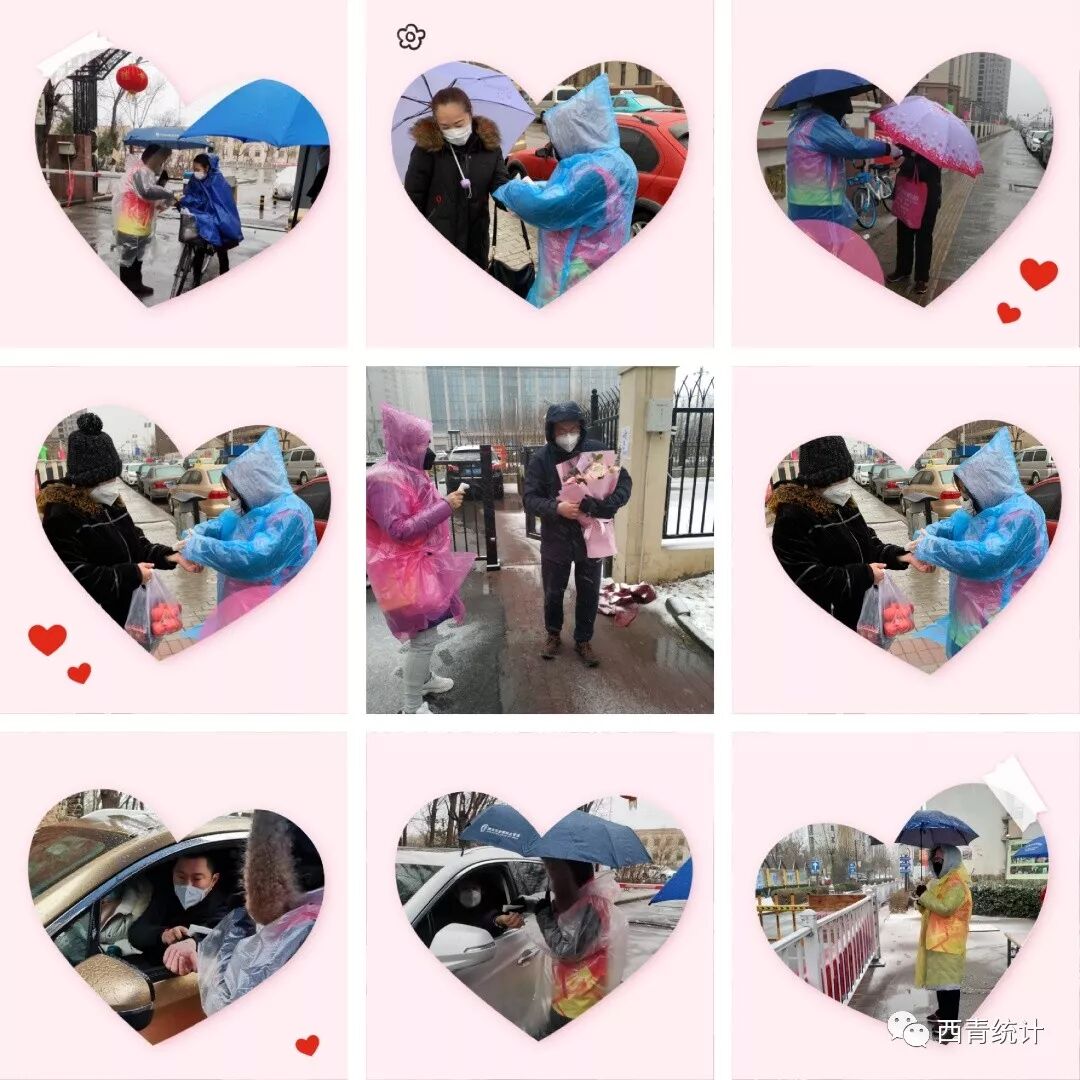 “你们辛苦啦!多穿点衣服啊”,“雨雪大到屋里面躲一躲吧!”过往的居民一边主动上前伸出胳膊测量体温,一边心疼地嘱咐小区门口的巾帼志愿者。“好嘞,天气不好路滑您少出门吧!”经过十多天值守,大多数居民从不适应到主动配合,一声声的感谢一句句的嘱咐令人暖心! ![]() 今天的天气真是“冻”真格了!气温骤降10度,一早晨纷纷扬扬的小雪粒和着雨水在凛冽的东北风裹挟下从天上密密麻麻紧锣密鼓落下来。上午八点,巾帼志愿们穿上雨衣撑开伞准时出现在村居门口,投入到紧张的工作。中午,大片雪花鹅毛般纷纷扬扬洒满天空,她们同样的位置、同样的话语、同样的姿势一遍又一遍耐心细致地重复再重复。 ![]() “粉马甲”们自疫情爆发以来,近20天里始终坚守在防控疫情一线,她们逆疫而行,面对疾风骤雪,不叫苦、不叫累、不退缩,不分白昼、不怕苦难,哪怕冻红了脸,冻僵了脚,依然有条不紊地为过往人员、车辆测温、查询、登记,顶风冒雪巍然坚守在防控一线岗位,甚至冒危险为居家隔离人员采购、扔垃圾,用自己的责任和担当筑起防控疫情的钢铁长城。 ![]() 在西青区各个村居门口,鲜艳的党旗在风雪中猎猎飘扬。党旗下的党员巾帼志愿者们战严寒,抗风雪,有的来不及穿上雨衣,任凭大片的雪花打到她们身上,呼啸的寒风刺到他们脸上,尽管这样,她们仍义无反顾的选择迎难而上,一如既往的为过往的人员登记备案,并耐心提醒没有特殊情况少出门,必要出门时一定要测量体温和佩戴口罩等。 ![]() 她们说:“咱们是党员,党哪里需要我们,我们就到哪里去,咱们还是女同志,关键时刻不能掉链子。条件虽然艰苦,下雪虽然冷,但是只要还有一天疫情不解除,我们就坚持一天,风里雪里,我们会一直在这里守护每个家庭。” ![]() 宅在家中的群众受到了爱的感召,全家老少齐上阵从早到晚忙活,蒸包子的、捏饺子的、炸素丸子的、煮疙瘩汤的、炖白菜粉丝的、熬保健黑茶的……纷纷送到一线,温暖风雪中的守护者们。 ![]() 很多一线勇士都说,是这些“粉马甲”和平凡的家庭用坚守坚定着我们打赢疫情防控阻击战的决心,他们是爱,是暖,是希望,正是因为有他们,我们才更安心。 ![]() 是的,虽然看不清你们的脸,但你们的样子真的好美!你们认真守护家园的样子,成为了雪中最美的风景线。风雪过后,又是艳阳百花开。 ![]() 统计巾帼“战”疫情 风雨坚守献大爱 要说西青区统计局两大特色,第一是数字多,第二便是美女多了。全局将近3/4的党员干部,都是女性。 别看统计局都是女性,却各个巾帼不让须眉,2月2日,肺炎疫情越来越紧急,战”疫”关头,时间就是生命。当大家得知全局需要出20名干部去往抗击肺炎的第一线,局里人手紧缺时,一个个柔弱的身躯挺身而出,当起了花木兰,纷纷表决心,战场不分男女,我们上!全局22人上阵,其中有17名,都是我们的统计巾帼,超过全部力量的77%,在西青区统计局抗击肺炎疫情的力量中,撑起的远远不止半边天。 ![]() 统计巾帼们拿起温度计冲锋陷阵,2月5日6日西青下着大雪,2月14日又下起了雨夹冰雹,然而,料峭寒风阻挡不住她们的脚步,满天飞雪埋没不了她们的斗志,冰霜大雨扑灭不了她们的大爱,她们走向在李七庄街的社区战场,为群众测体温,登记来往车辆,为了防治疫情倾情奉献自己的力量,这一去,就是连着整整12天。36.2℃,36.7℃,36.5℃......即使转换了“战场”,接触最多的还是最熟悉的阿拉伯数字,统计巾帼们从来没有如此渴望过数字平稳运行。 ![]() 社区中的统计巾帼 ![]() 因为局里都是女同志,很多姐妹们不会开车,特殊时期为了减少坐公交车,大家相互帮助,互相搭车去社区门口,每天来往去社区的路程,将近两个小时。虽然每天下社区,但是局里本职的工作不能落下,遇到紧急的工作,统计巾帼们站岗结束后,继续回到局里完成工作,工作质量丝毫不打折扣。为了更好的工作,刘宁同志把孩子放在了婆婆那里,已经12天没有见过自己的两个孩子了,与孩子视频结束她擦擦眼泪,第二天又继续冲上防疫一线。深知局中人手急缺,张妍,董玉娟,薛丽同志刚刚生病转好,就立马请求上岗,加入到战斗队伍中。韩立云同志刚刚解除隔离,也火速归队...... ![]() 今天还有个特殊的日子,那便是情人节,这个情人节或许没有了情人的陪伴,但风雨中,统计局巾帼们化身为疫情中最靓丽,最暖心的一线战士,守护着你我他,奉献着她的大爱!凝心聚力,有爱必胜!相信在统计局巾帼们的坚守下,必定会迎来云开疫散! ![]() 社区中的统计巾帼 |