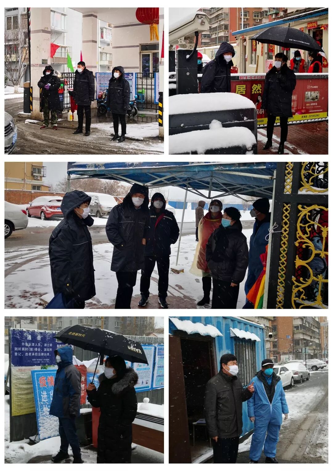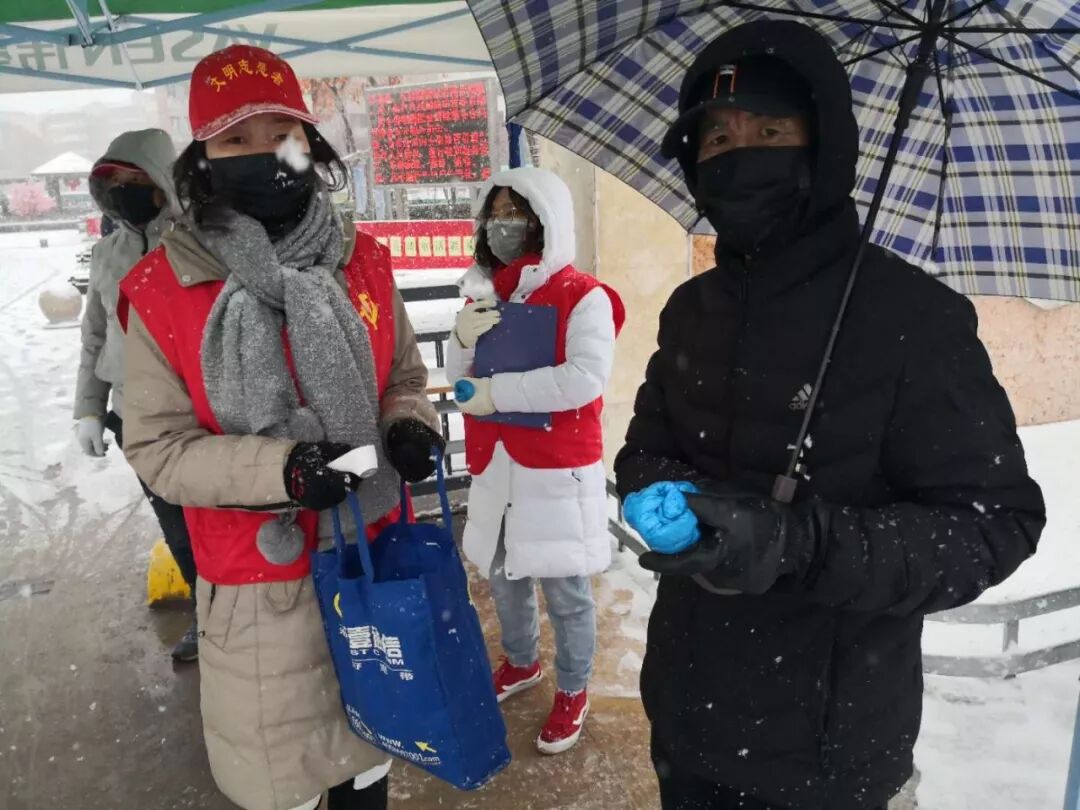 2月14日,津城迎来了又一次的降温降雪,但终也阻挡不了西营门街党员干部抗击疫情的坚定信心。各村、社区卡口值班人员在严寒中坚守在一线,他们的脸和手被冻得通红,却没有一丝抱怨,认真登记着出入人员、车辆情况,坚守岗位,一丝不苟。他们已经忘却了脚下冰冷的雪层和从脸颊呼啸而过的寒风,定格在群众们眼中的是一个个为防疫工作助力的可敬的身影。