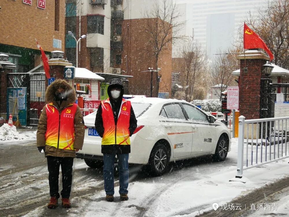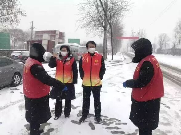 区委宣传部派驻李七庄街参与一线疫情防控的党员志愿者在风雪中坚守工作岗位,用自己的行动践行“四力”,为打赢疫情阻击战贡献自己的力量。