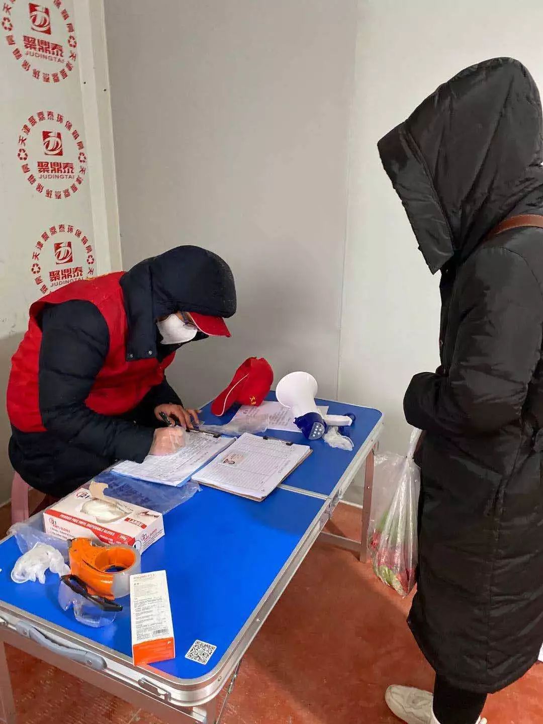 西青区大寺镇金友花园和金谊花园两个社区都是天津市限价房小区,共有居民4755户,其中包括租户1001户,居民近12000人,租户多难以掌控人口流动情况,居民多给摸排工作带来难度,因此为最大限度地让居民配合共同战“疫”,守护居民的身体健康和生命安全,金友、金谊两个相邻社区同时决定靠前指挥,精细摸排,在小区入口设立集装箱临时战“疫”指挥部,把工作地点从社区办公室搬到了最前线。