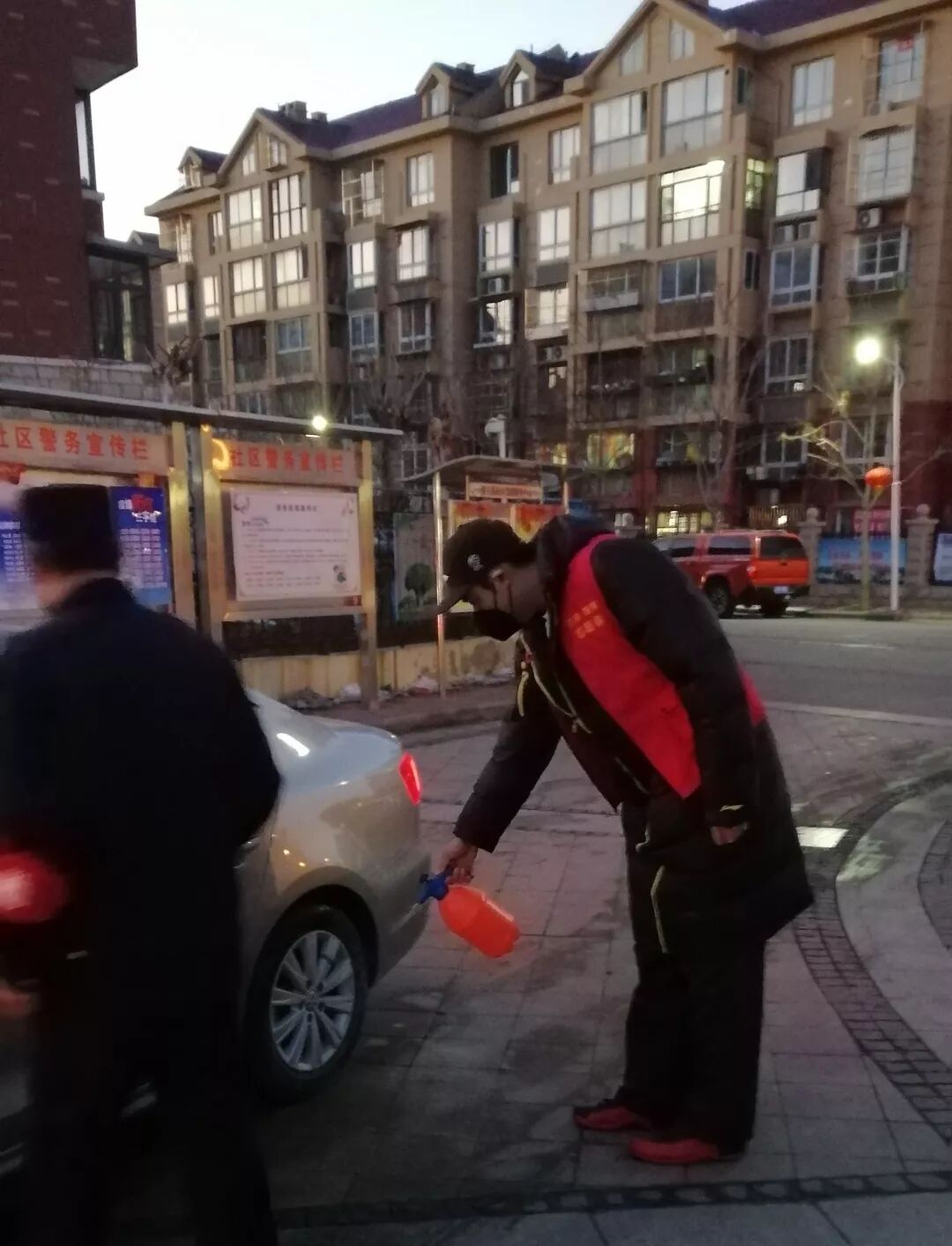 西青区大寺镇博文苑社区入口检测点来了两个“高人”志愿者,给过往车辆消毒,为司机测体温,教过往司机和行人扫码“津门战疫”,他们一直忙碌着,有热情的居民认出了“高人”中的女孩儿,她就是李莹,原中国女排队员、天津女排主力队员,身高一米八,而另一个“高人”是她的丈夫徐磊,身高两米零七,原天津男篮队员。