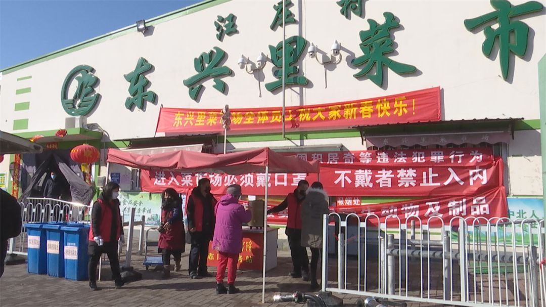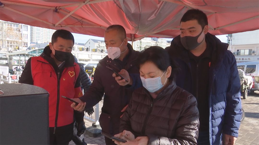 18日上午10点,记者在中北镇东兴里菜市场门前看到,市场管理人员一边为前来购物的顾客测量体温,一边有序引导大家扫码“津门战疫”小程序,并耐心告知大家,这是本市最新出台的“战时”防疫规定,为了自身和他人的健康安全,请积极配合。