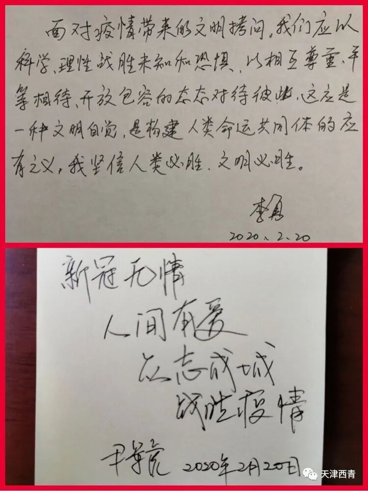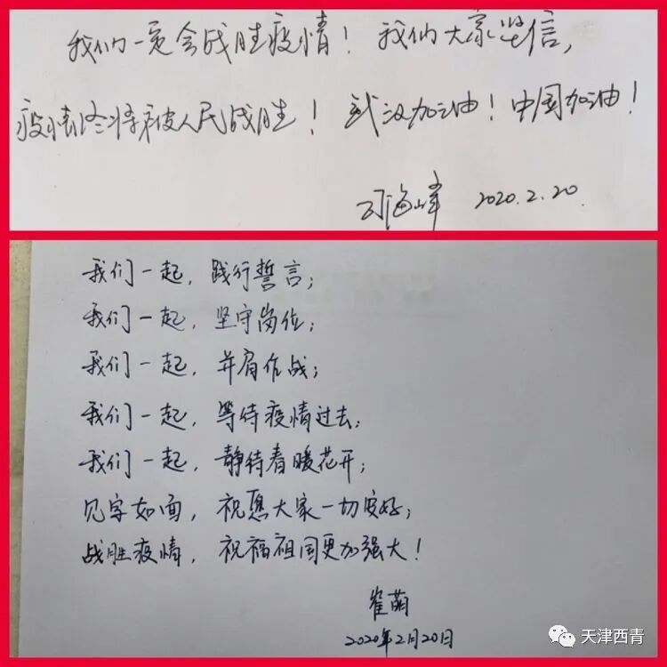 特殊时期,我们见字如面,每名党员手写一句话,有感悟、祝福,有致敬、加油,通过支部微信群进行“线上”分享,交流共勉。手写话语,坚定且满怀信心,朴实且充满力量,积极且目标一致。