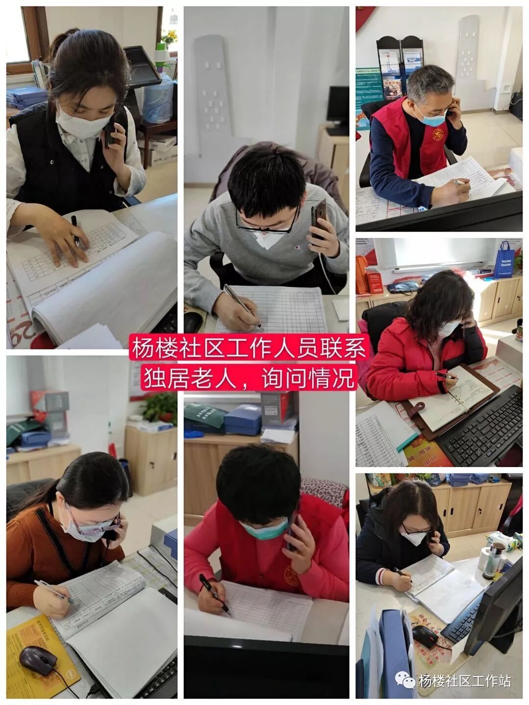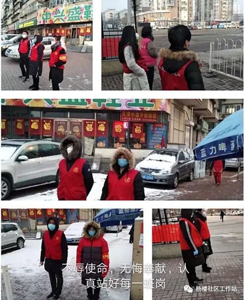 杨楼社区社工坚守在一线,为打赢战疫绝不退缩! 杨楼社区有8名工作人员,服务着辖区内2832户8400余人,自疫情发生以来,社区工作人员秉承“真情凝聚党心,服务温暖人心”的宗旨坚守在一线,从未退缩,为社区居民的健康安全守住第一道防线。 大年三十下午社区党委书记、居委会主任李倩参加了全街疫情防控的紧急部署会,会后立即展开宣传工作,召集离家近的社工到社区张贴“一封信”,三十晚上十点之前将社区一共39栋楼,186个楼门张贴完毕。与此同时其他社工也放弃了与家人团聚的时刻,立即从武清、宁河、河北省等地向李七庄街方向出发,初一早上8点所有社工集结完毕,没有一刻停歇、没有一丝松懈、没有一人抱怨,迅速展开工作。 ![]() 年三十晚上寂静的高速路 ![]() 加油 上班之后在张贴楼门栋一封信的基础上扩大为给每户居民发放一封信,将现实情况通知到每家每户。同时每个网格员开展电话排查,询问每户居民过年前后的外出情况,社区人都变成了电话客服员“您好,我是杨楼居委会的工作人员,请问您近期有没有去过武汉或者是跟那边的人有过接触”、“您好,请问您近期有没有去过湖北省或者接触过从外省返津的人员”、“您好,疫情期间请您一定减少外出,有任何疑问和情况都可以随时联系咱们居委会”、“大爷您好,您岁数大了尽量不要外出,外出一定做好防护,有事找咱居委会”、“你好,请问你是租住在杨楼社区吗,老家是哪里的,有没有返津意向,请您回来的时候第一时间报备居委会”,一时间社区里的说话声此起彼伏,似有万人响应,这热热闹闹的声音,看似是信息排查,实际上送出去的是关切关怀,一句句叮咛嘱托是社区工作者在新春之际对居民最真挚的问候,居民好社工才好,居民健康安然社工便无恙。 社区的任务就是“看好门、管住人、讲清事、举好旗”,小区封闭式管理是外防输入、内防扩散的最先选项,社区的防控能力至关重要,所以尽管网格员还要信息排查但依然坚持轮流站岗,保证小区出入口24小时不空岗,保证“逢人必测”、“外人必登”,做到“看好门”。 ![]() 津门战疫 ![]() 杨楼社区检查超市药店等日常消毒、测温工作 ![]() 严格管控封闭小区卡口,第一时间做好说明解释工作 落实“五个一” 包片领导李悦来社区站岗执勤 ![]() 在“看好人”方面,社区强化居家隔离管控,截止目前,有三户11人采取严格管理的居家隔离人员已经全部解除,隔离期间体温正常。目前,社区从外省回来需要居家管理的人员还有85人,社区网格员每天进行电话联系。 ![]() 2020年1月31日早上六点,包片领导李悦、社区工作人员、片警、卫生院医生一起送去酒精,并向该住户通知了居家隔离的要求及注意事项。 ![]() 为居家隔离人员送菜,再小的需求都承载着满满的爱意,让居家隔离人员不孤单、不恐慌。 ![]() 严格管理:在居家隔离人员门缝处张贴一封信 签订房东责任制 除此之外社区联合社区民警对群租房问题进行了入户核查管理工作,了解房屋内人员居住信息,并第一时间与房主及外卖负责人(承租人)联系,通过工作,承租人认识到疫情期间要做好安全管理,立即开展安全扫除整改,立刻排除安全隐患,全面落实日常防护要求。 ![]() 签订房东责任制 ![]() 在小区出入口排查外省返津人员,及时做好登记 ![]() 关爱独居老人:每一天电话联系,每三天见面一次,帮老人采买 ![]() 给60岁以上老人发放爱心口罩、为独居老人发放“连心卡” ![]() 社区工作人员轮流站岗,保障老年人安全秩序的领取养老金 ![]() 大雪过后社区8名社工轮流清扫门岗积雪,保障居民出行安全 社区确保“讲清事”,做到宣传全覆盖。张贴公告、海报、条幅,社区出入口小喇叭高频次播放,加大宣传力度,提高居民的认识和防控意识,真正得到居民的理解和支持。 ![]() 张贴宣传海报,并将一封信送到每家每户 ![]() 小音响全天播放 ![]() 回复督办单中居民的疑问,做好宣传工作,及时疏导居民情绪 社区定期召开总结会议,宣传部署下阶段工作 ![]() 社区第一时间对小区车辆进行排查,外省车辆及时联系,其中一辆湖北省牌照车进行特殊说明,及时向居民解释情况,避免恐慌。 确保“举好旗”,党建引领防疫战。发挥基层党组织战斗堡垒作用,引导党员在疫情防控一线勇担当、做表率,协助社区联防联控,让党旗在疫情防控一线高高飘扬。 我社区通过社区党委党员微信群、社区报到党员群,广泛转发上级防疫文件通告、新型冠状病毒感染肺炎防治知识,及时公布有关防控工作信息,并向社区党员发布“集结令”,通过志愿活动内容及时间自选的方式,每天认领志愿活动项目,发挥党员先锋模范作用。现有42名党员70人次参与到社区疫情防控当中,通过张贴发放疫情宣传材料,站岗测温,巡查商铺,文明劝导居民佩戴口罩等方式,默默为社区疫情防控工作奉献自己的力量,无论严寒还是黑夜,所有党员没有任何怨言,把初心书写在抗击疫情一线。 ![]() ![]() 抗击疫情,老党员在行动 我社区党员王爱英同志是一名有着近三十年党龄的老党员,王阿姨说自己受党教育多年,一直心存感激,年轻时努力工作回报社会,现在自己年岁大了,不能亲自参与到一线防控工作当中,特此捐款两百元用于社区工作人员购买口罩、消毒用品等。 ![]() 疫情就是命令,防控就是责任,哪里遇到困难,哪里就有党员,杨楼社区抗疫毫不松懈,让党旗在防控斗