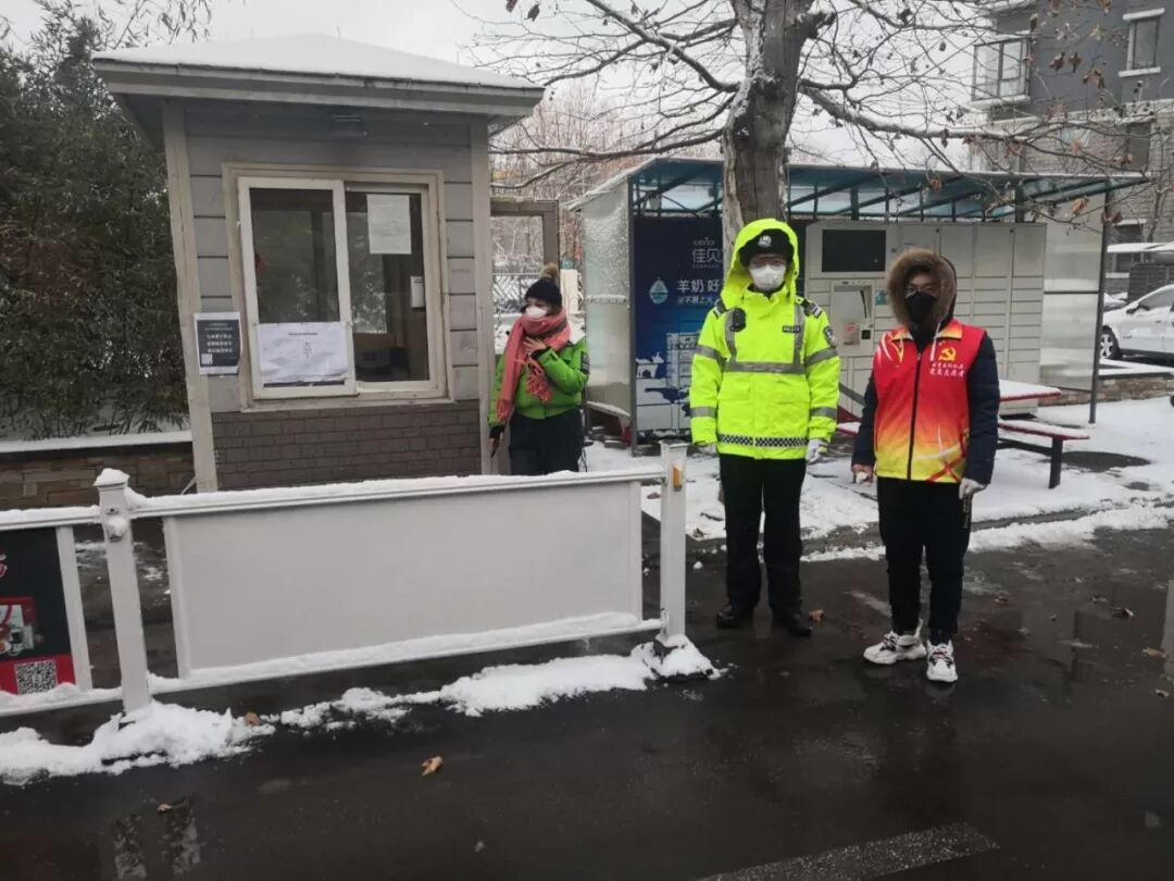 几天前的一场大雪,给防疫工作带来困难,但他们依然没有因大雪而降低值守标准,大家按时到达值守点位,对来往车辆逐一排查、测温登记,更加认真仔细记录着返乡人员的情况信息。雪花飘飘洒洒,落在党员们的肩上,凛冽寒风呼啸而过,吹红了他们的脸庞,尽管双手被冻得通红,他们毅然决然地坚守在自己的岗位上,为的就是给社区换来一份安心。他们踏实勤勉的工作作风令居住在该社区的居民们十分感动:“患难时候见真情!区直部门的党员干部和社区的工作人员们,真是好样的!”
