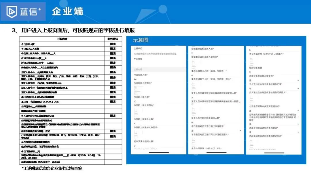 该系统设立了企业开放疫情动态数据每日上报、后台全面监控分析预测以及疫情数据报告的自动生成等功能,可满足西青开发区疫情防控、全面摸排的工作需求。该平台有助于提高企业信息统计效率及提取准确性,是西青开发区落实分区分级精准防控,实现疫情科学防治与精准施策要求的重要创新举措。