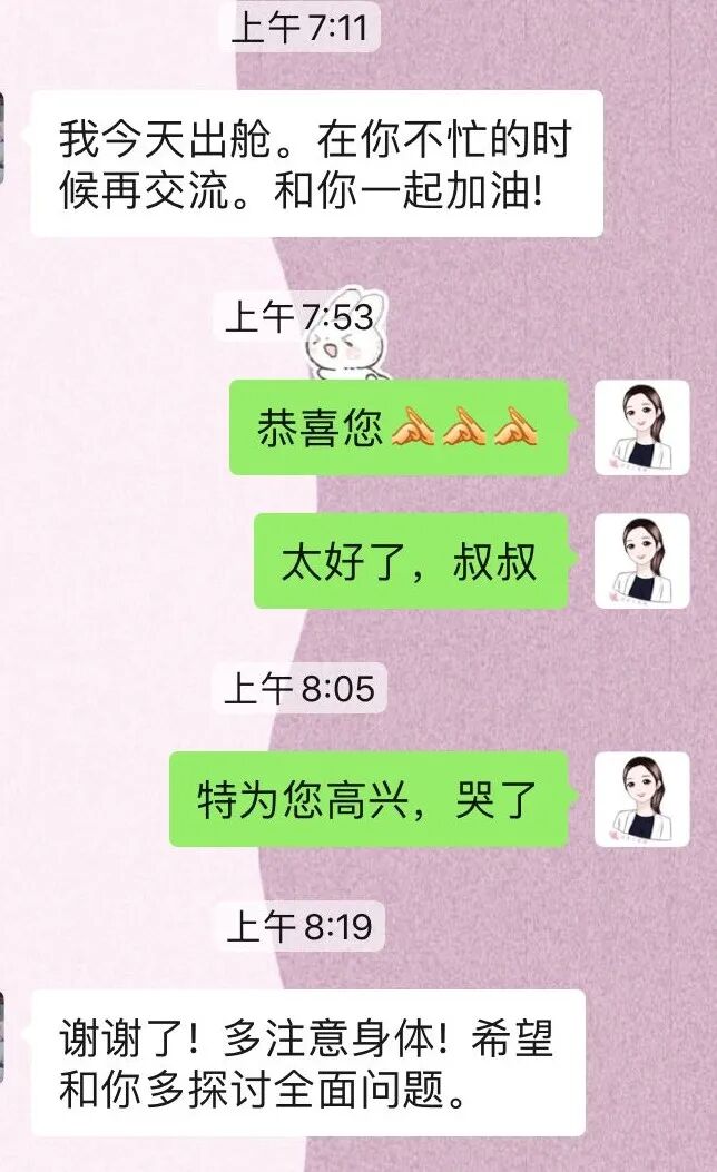 【2月26日 二月初四】 我去武汉听汉江江水涛涛 您来西青看运河杨柳依依 凌叔叔今天出院了! 看到他发给我的微信,刚想笑笑,眼泪却止不住地流下来。 凌叔叔是谁呢? 关注我们系列报道《西青记者前线手记》的朋友不会陌生。我们有些医院内部的独家照片,来自凌叔叔的热心提供。 ![]() 今天一早,凌叔叔将出院的喜讯告诉记者 ![]() 为什么凌叔叔会把照片提供给我们? 因为来自天津西青医护人员无微不至的照顾与关心,使他对西青这片土地产生了好感。 2月15日,凌叔叔住进了武汉江岸方舱医院,帮助他入院的医护人员是来自天津医疗队的西青驰援武汉第三批医护工作者。 生病使人变得焦虑和难过。感染上新冠肺炎疫情的过程让凌叔觉得委屈。 1月21日,凌叔叔去武汉眼科医院看病,医院离华南市场一站路的车程。“防护很好。但是还是中标了。”他回忆道。1月23日,武汉封城,他一直没有踏出家门半步,1月30日,他出现低烧,自己便进行了隔离。 2月6日,武汉的天是阴的,如同他的心情。凌叔与爱人一同到社区医院拍摄胸片,才检查出自己感染了新冠肺炎。 ![]() 诊断记录 “为什么自己防护措施做得很好,却不幸感染上肺炎。”他在心里无数次地问过自己。 住进方舱医院后,凌叔叔焦虑的心情有了缓解。他不仅得到了治疗,更得到了天津医疗队的关心。 在这里,一个医生平均分管125张床的病人。在病人没有需求的时候,他们抓紧时间了解每一位病人的病史,看看病人目前的常用药品及其用量用法,了解病情进展。护士们更加辛苦,因为他们要不时的监测患者的体温、血压、心率、血氧饱和度、指导患者服药以及生活上的各种大事小情。 ![]() 同时,医护人员从刚开始身着防护服的举步维艰、小心翼翼,到现在每天带着大家练习跳康复操,教会大家正确洗手的方法,树立战胜疾病的信心,医疗队员和患者的关系也开始从陌生变得熟悉,彼此之间的沟通也越来越多。 ![]() 医护人员向患者示范康复操 由于病情不是很严重,凌叔叔自发加入了志愿者队伍。谈及加入的初衷,他说,住院第一天就被这里的一切感动到了:“医护人员太不容易了,特别是西青的医生护士们,给了我很多帮助。无论多忙,他们非常耐心地关心每一名患者。” ![]() 他会帮助情绪低落的病人做思想工作,会拍摄一些照片,配上文字做成宣教海报。凌叔叔是退伍老兵,他说:“在这场没有硝烟的防疫战中,谁都不是局外人。团结就是力量!” ![]() 凌叔叔做的宣教图片 这是凌叔叔在方舱医院里最后一次做检查,医生向他交代出去后护理的有关事宜。他向医生庄严地敬礼,致以一名退伍老兵崇高的敬意。 ![]() 这场关于凌叔叔与我们的故事告一段落了。他说,有空的时候一定来西青走走看看。 怀抱着对新生活的期待,对生命的热爱,在这场战斗中我们收获的是西青人与武汉人之间,最珍贵的感情——我去武汉听汉江涛涛,您来西青看运河杨柳依依。 ![]() 无论何时何地,任何年纪,都不要忘记读书! |