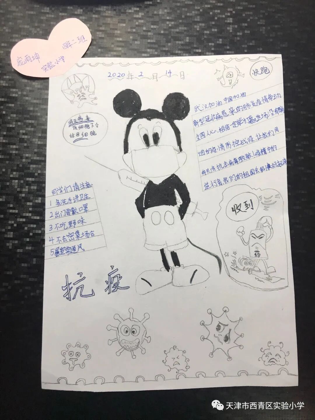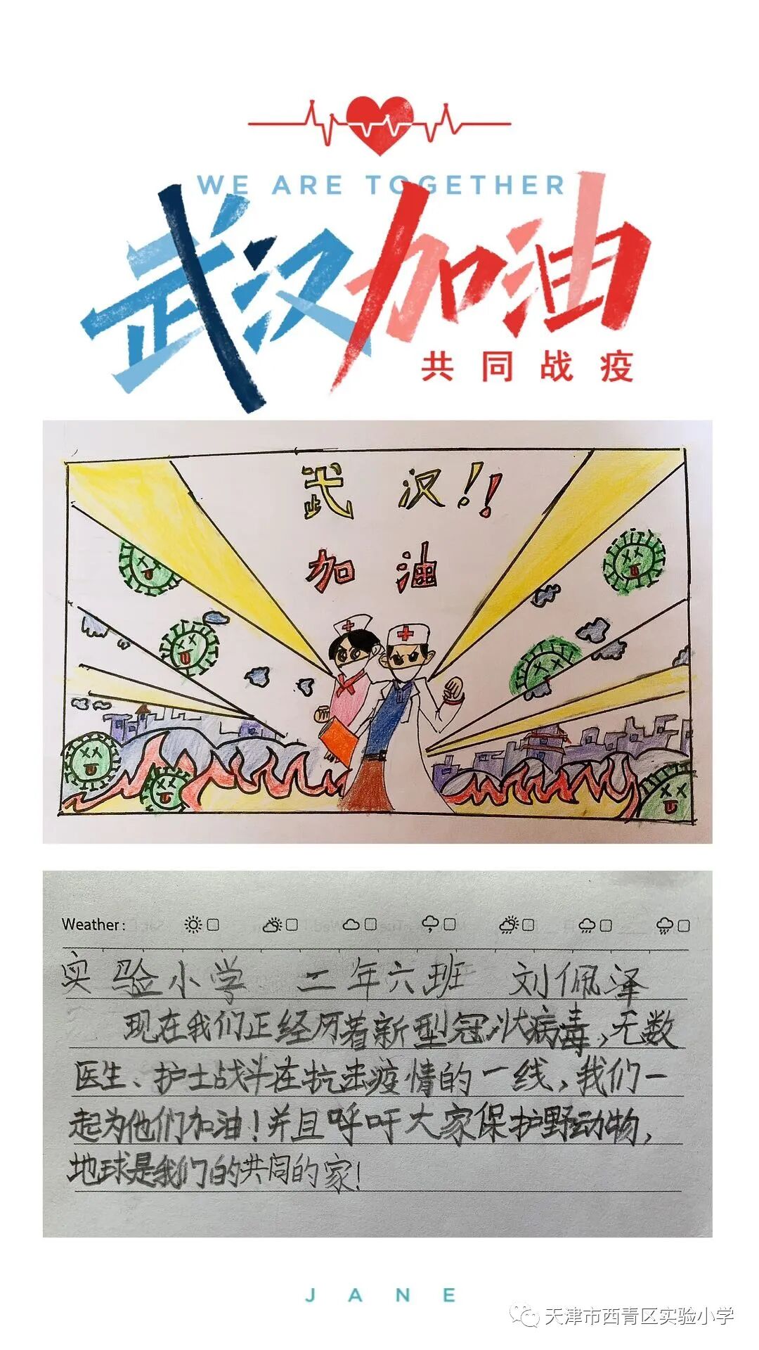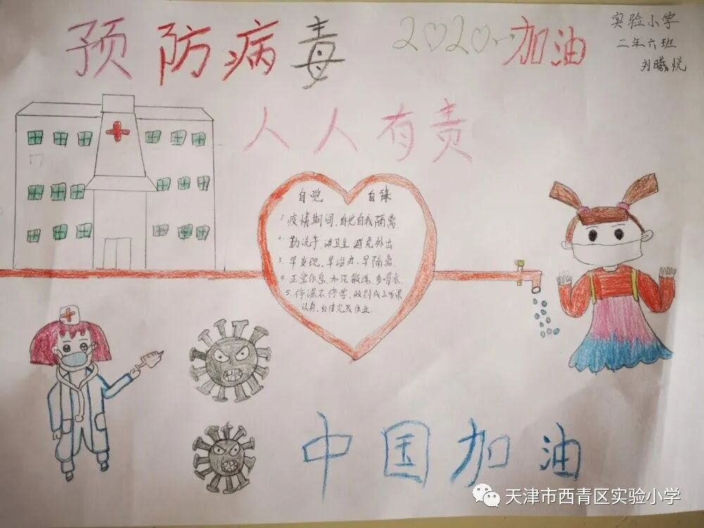 亲爱的同学们,一场突如其来的新冠肺炎疫情阻挡了我们开学的脚步,我们积极响应党中央的号召,宅在家里不出门,不给奋战在抗击疫情一线的叔叔阿姨、爷爷奶奶们添麻烦,但是作为社会主义的接班人我们也要积极参与这场防疫阻击战,我们每天在家里认真收看新闻、了解疫情的实况信息;我们利用这段时间看课外书、增长见识;我们按老师的要求准时学习,锻炼身体;我们和爸爸妈妈一起做家务、做美食,锻炼自理能力;我们更积极的加入到学校“为祖国加油 万众一心抗疫情”争做实小多彩之星活动,精心创作我们的作品,为抗疫奉献我们的微薄之力。下面就请欣赏我们实小学子原创作品集之——手抄报篇! ![]() 六年六班 杨天一 ![]() 六年六班樊涵 ![]() 二年六班 流曦悦 ![]() 六年六班 赵雪彤 ![]() 四年二班 庞雨坤 三年四班 张梓晨 ![]() ![]() 五年二班王婧怡 五年三班郝洁 ![]() 致敬最美逆行者 ![]() 四年二班 胡嘉宁 ![]() 四年二班 徐欣雅 祝福篇 ![]() 一年五班 杜雨鑫 ![]() 二年六班 毕恩俊 ![]() 六年一班 王嘉伊 ![]() 六年二班 张僮芮 ![]() 三年一班 刘安叙 ![]() ![]() ![]() 二年三班 陈昊霖 ![]() 三年一班 张鑫淼 ![]() 二年六班 刘佩泽 |