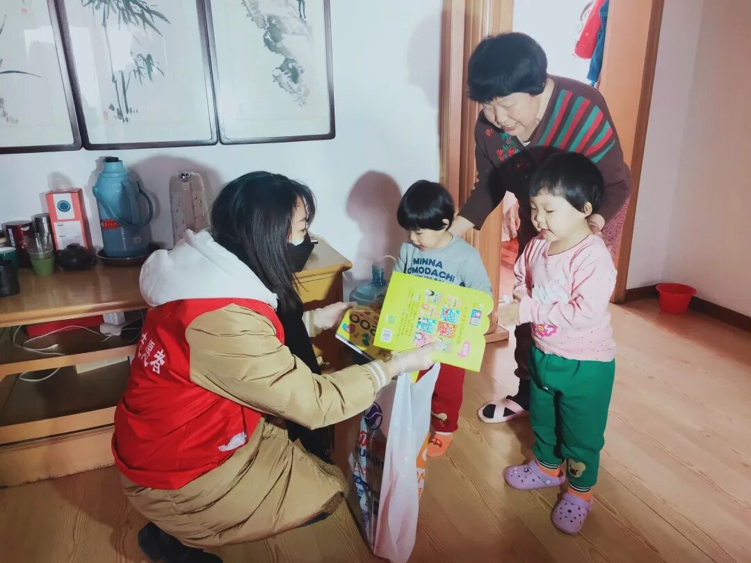 当家中奶奶打开门时,她的身后传出一声稚嫩的“叔叔阿姨,你们好。”孩子的那份可爱、纯真、热情打动着来到这里的每一位志愿者。孩子们看到家中有客人来,非常开心,立即打开画板和青年志愿者一起玩耍,在游戏的过程中,青年志愿者发现这是一对十分乖巧而有礼貌的小姐妹。孩子的奶奶说,战胜疫情后,她们就快上幼儿园了。于是,青年志愿者热心的和奶奶分享了宝宝新入幼儿园的一些经验。孩子的爷爷告诉志愿者,妈妈去湖北后,她们只能以视频的方式联络,但两个孩子未曾有过哭闹,一直告诉妈妈要加油,要努力!