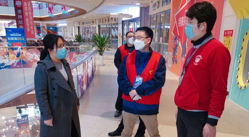 在走访永旺梅江店、印象城等商业服务业企业时,重点检查商场、超市疫情防控措施落实情况。察看人员排队进出、体温测量、口罩佩戴等情况;向企业发放《致在西青区的外国友人一封信》等宣传材料,提示企业要加强外籍员工健康安全管理,严格落实外籍员工管理的各项措施;叮嘱企业要严格控制人员密度,加强员工健康监测,做好消毒通风,不折不扣将防疫措施落实到位。