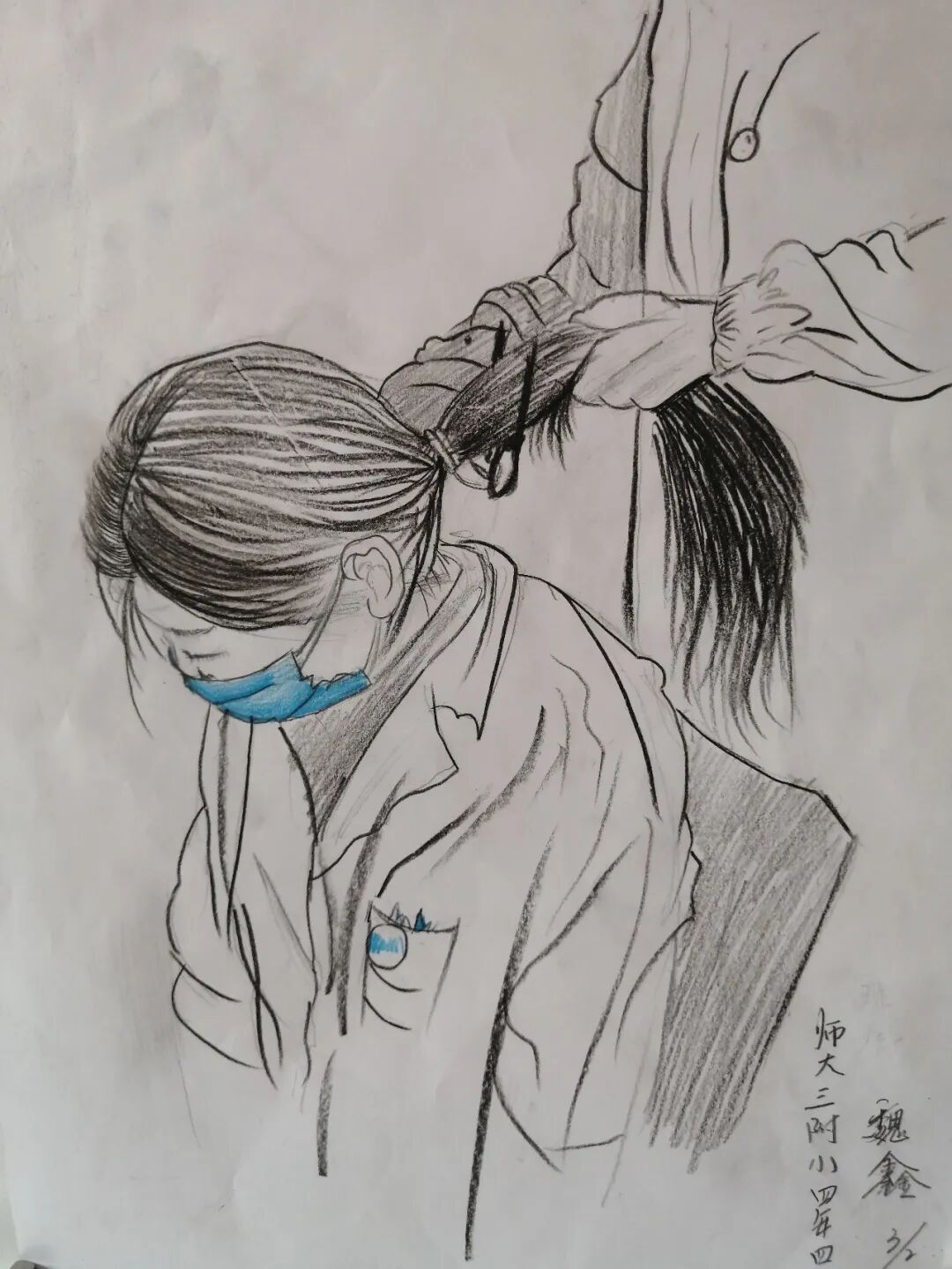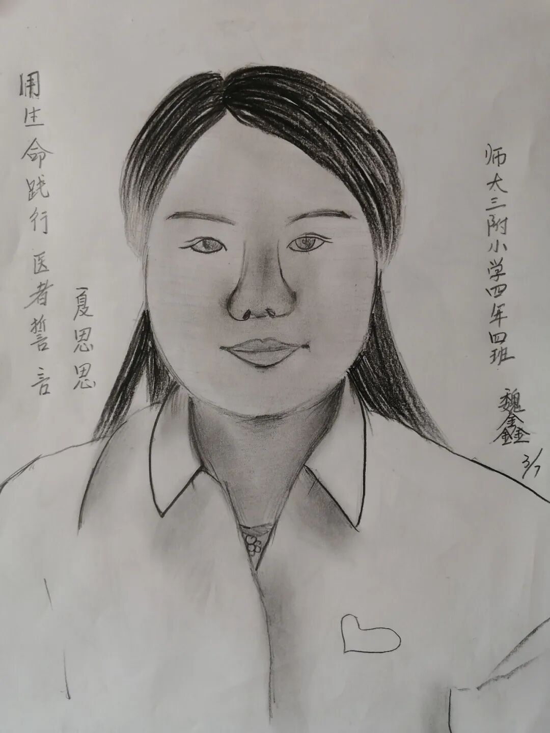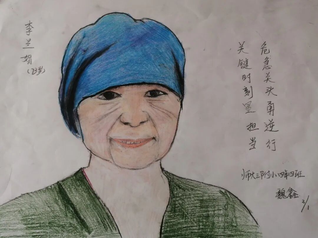 2020年注定是不平凡的一年。由于新冠状病毒的肆虐,中国人民团结一心,众志成城,又一次向世界证明了中国力量。在这疫情阻击战中,一位位巾帼英雄勇赴抗疫一线,将生死置之度外、舍小家为大家的精神感动着我们。在三八妇女节来临之际,天津师范大学第三附属小学四年四班的魏鑫同学,拿起手中的画笔,创作了《巾帼英雄》系列作品,向奋战在抗疫一线的巾帼英雄们致敬! 1.危急关头勇逆行,关键时刻显担当 —李兰娟 ![]() 丁香花花语:光辉 ![]() 新冠疫情爆发后,73岁的李兰娟院士与17年前抗击非典一样,冲在了防控武汉疫情的第一线。1月22日,为了防止武汉新型冠状病毒感染的肺炎向外输出,建议武汉必须实行全城隔离,即“封城”。很快这一建议被国务院采纳,对防控疫情扩大做出了重要贡献。2月20日,李兰娟院士走进武汉大学人民医院东院区ICU病房,问诊新冠肺炎危重症患者。年迈的她每天只睡三个小时,穿着厚重的防护服夜以继日的工作,当她脱下防护服,脸上压痕清晰可见,正是这张照片令全中国人感动。 把圣洁的丁香花送给敬爱的李兰娟院士,您的光辉像丁香花一样为我们带来希望! 2.与“毒”共舞的抗疫将军—陈薇 ![]() 向日葵花语:无尽的爱、光辉、忠诚 ![]() 陈薇少将,54岁,中国工程院院士、军事科学院军事医学研究院研究员。此前她在阻击非典、抗击埃博拉中都做出了重要贡献。农历大年初二,陈薇带领团队进驻武汉,争分夺秒进行应急科研攻关,自主研发的检测试剂盒大大缩短了核酸检测时间,加快确诊速度,有力推进了疫情防控工作。面对新冠病毒,陈薇将军说道:“疫情就是军情,疫区就是战场。我们一定坚决落实主席指示,争分夺秒与病毒赛跑。” 把赤诚的向日葵送给陈薇将军,您的付出与忠诚闪耀在中华大地,给我们带来阳光! ![]() 3.疫情上报第一人—张继先 ![]() 仙人掌花语:坚强、执着 ![]() 张继先,54岁,湖北省中西医结合医院呼吸与重症医学科主任。就是这位温和的女医生,最早发现新冠疫情的苗头,并和院方一起上报。从发现最初患病的一家三口起,张继先就要求所有呼吸科医护人员带口罩。与此同时,敏锐的她嘱咐科室人员在网上订购了30套细帆布的白色工作服当做隔离衣。也正是因为她超强的传染病防护意识,从最初收治的那批病人到现在,张继先所在的科室做到了无一例医护人员感染,无病人交叉感染。 把坚强的仙人掌送给张继先大夫,正是您的敏锐与执着守护着我们的生命健康! 4.天津“福尔摩斯”—张颖 ![]() 黄蔷薇花语:永恒的微笑,自信而善良 ![]() 张颖,天津市疾控中心副主任。疫情爆发后,张颖就和同事一起进行疫情研判,不分昼夜地工作。当宝坻出现聚集性病例后,2月2日召开了天津市新型冠状病毒肺炎疫情防控工作新闻发布会。在发布会上,张颖全程脱稿、思路清晰的进行了一场“教科书式的讲解”,整个过程对病毒的传播链条剥丝抽茧,破解了“百货大楼迷雾”,因此被大众称为天津“福尔摩斯”。 把绚丽的黄色蔷薇花送给张颖主任,您的自信与细致是我们学习的榜样。 5.用生命践行医者誓言—夏思思 ![]() 风信子花语:永远的怀念 ![]() 夏思思,女,29岁,生前任协和江北医院(蔡甸区人民医院)消化内科医生。新冠肺炎疫情发生以来,她始终坚守临床一线,在救治患者时,主动申请留院观察,不幸被感染。在治疗期间,她主动把ICU床位让给其他患者。在病床上,她依然牵挂工作,希望治愈后能重返一线。2020年2月23日清晨6时30分,夏思思经救治无效在武汉大学中南医院不幸去世,以身殉职,留下了年迈的父母和两岁的儿子。 把纯洁的风信子献给夏思思大夫,您在即将春暖花开的时节离开了我们,留给我们永恒的思念。 6.逆风而上,视死如归—“雨衣妹妹” ![]() 鸢尾花花语:好消息、使者、信仰 ![]() “雨衣妹妹”,24岁,是一名成都餐饮从业者。2月初,疫情高度爆发时期,她了解到,由于事态紧急,武汉许多医护人员甚至没有时间吃一口热饭。即刻,她便决定写好遗书带队赶去武汉为医护人员免费做饭。一开始她没有专业的防护服、护目镜,她穿着雨衣,戴着滑雪眼镜和口罩奔走在武汉市各医院。随着她的奔波,她的付出为越来越多的人感动,大家便都亲切的称呼她为“雨衣妹妹”。 把热情的鸢尾花送给“雨衣妹妹”,你是善良的使者,用自己的大爱温暖人间。 7.我不知道你是谁,却知道你为了谁 ![]() 腊梅花语:纯洁、坚强、默默无闻、无私奉献 ![]() 为了避免交叉感染,也为了节约穿脱防护衣帽的时间,武汉很多护士都自发剪发,甚至剃了光头。我们不知道这些护士的名字,但是她们的精神深深的感动着我们。她们剪去的是长长的秀发,留下的是与病毒抗争到底的决心。 把坚韧的腊梅送给默默付出的护士们,你们是最美的天使,你们的无私与坚强是守护生命的能量! 在众多为疫情付出的人之中,她们是典型的代表。在家与国中,她们选择了国;在小爱与大爱中,她们选择了大爱。临危不惧,不负使命;生当作豪杰,死亦为鬼雄。这份敢于承担的魄力,这份舍己为人的品质,无不令人钦佩。她们用自己的生命书写着最感人的篇章! ![]() 木棉花花语:英雄之花、珍惜眼前的幸福 把木棉花献给所有奋战在一线的巾帼英雄,她们或为人妻,为人母,为儿女,或年长,或年轻,但都奋战在疫情防控的第一线上。此刻,是她们护我国土、佑我中华,她们也无愧是我们心中的