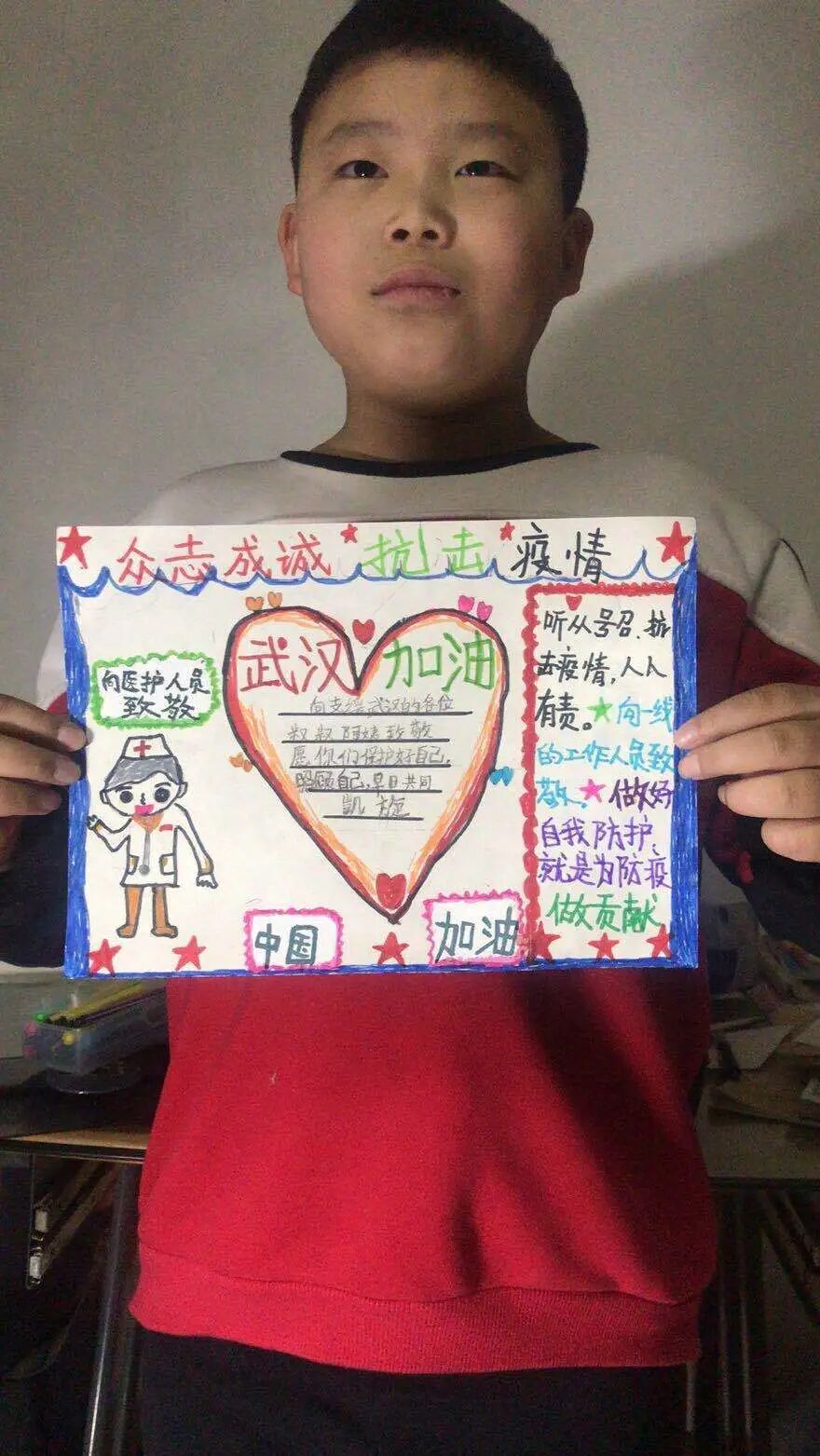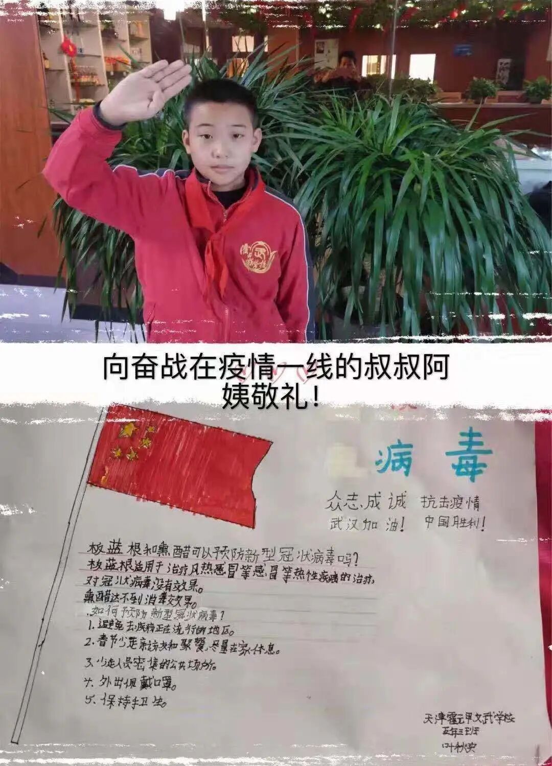 ![]() 三月是学雷锋志愿服务月,在这个特殊时期,天津霍元甲文武学校小学部寄宿班的领导班子组织小学部全体学生开展了“雷锋精神代代传,抗疫英雄永存心”主题活动,学生们在家中以不同的方式积极参与到学雷锋活动中。有的同学书写了“雷锋精神我传承”心得,从一字一句中深深地感受到了他们对雷锋的尊敬,以及决心发扬雷锋精神的意志。有的同学制作了手抄报,向坚守在抗疫一线的英雄们致敬。 ![]() ![]() 在来势汹汹的疫情面前,向“疫”而行的“逆行者”们令人钦佩。全国各地无数仁人志士踊跃报名参加支援武汉,有主动报名支援前线的年轻护士、有坚守岗位确保救援物资专列开行的一线职工、有日夜坚守岗位确保道路畅通的执勤交警……他们那种义不容辞、英勇无畏的精神值得我们每一位同学学习! ![]() 抗“疫”英雄们面对病毒毫不退缩,展现出应有的责任担当,是祖国的骄傲,是民族的自豪。正是有了他们的付出,我们才会有顺利返岗、返校,安心工作、学习的场景;正是有了他们勇往直前阻击病毒的决心,我们才有了回归生活正轨的信心。 ![]() 通过本次主题活动,同学们纷纷表示,“逆行者”是祖国的英雄,我们会以他们为榜样,好好学习,将来也要成为对社会,对国家的有用之才! ![]() ![]() ![]() |