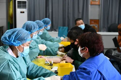 一名医生一名护士负责预检分诊,测体温、做流调;两名医生负责内科、皮肤科检查,两名医生负责胸部X线检查;四名护士负责取血,一名护士负责收取尿便标本,取血室、内科诊室、体检车一人一进一消毒,尽最大努力的保障安全,避免交叉感染。体检时工厂也派多名工作人员负责维持秩序,体检工作有序的进行。中午十二点多,一百七十人的体检任务顺利完成。