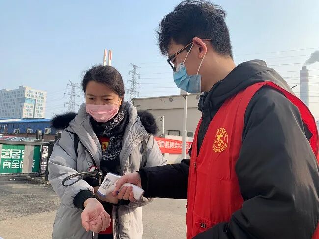 “您好,麻烦出示一下出入证。”“大哥请留步,给您测一下体温。”“您的车牌没登记,请问是外地回来的吗?”“不好意思,您不是我们小区的常住居民,麻烦扫码登记……”每天车人流往返高峰的时候,总有几位穿着红马甲的陌生面孔,守在依丽园、华亭丽园小区门口,和居委会工作人员一起,忙着查证件、测体温。他们是学生、是员工、是中介、是妈妈,但此刻,只有一个共同的名字——中北镇志愿者。