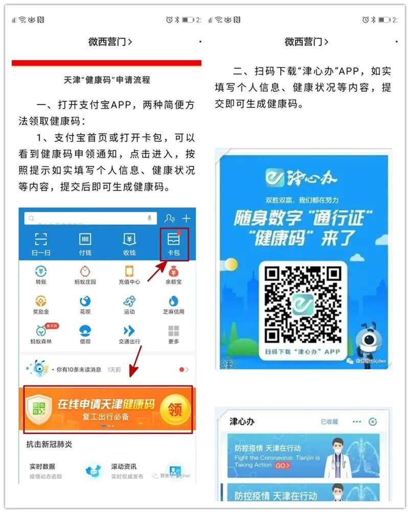 利用QQ群、居民微信群、朋友圈、微信公众号等“线上”阵地,发布“健康码”申领步骤和使用流程,积极引导或帮助居民通过支付宝、“津心办”APP完成“健康码”申请。“线下”充分利用社区宣传栏、小区楼道、出入卡口等固定点位设置宣传展板,张贴宣传海报、发放“健康码”明白纸,并组织工作人员向过往居民宣传申领“健康码”的重要意义和申请方法,让更多的居民了解“健康码”,自主申领“健康码”,并指导协助居民申领“健康码”。