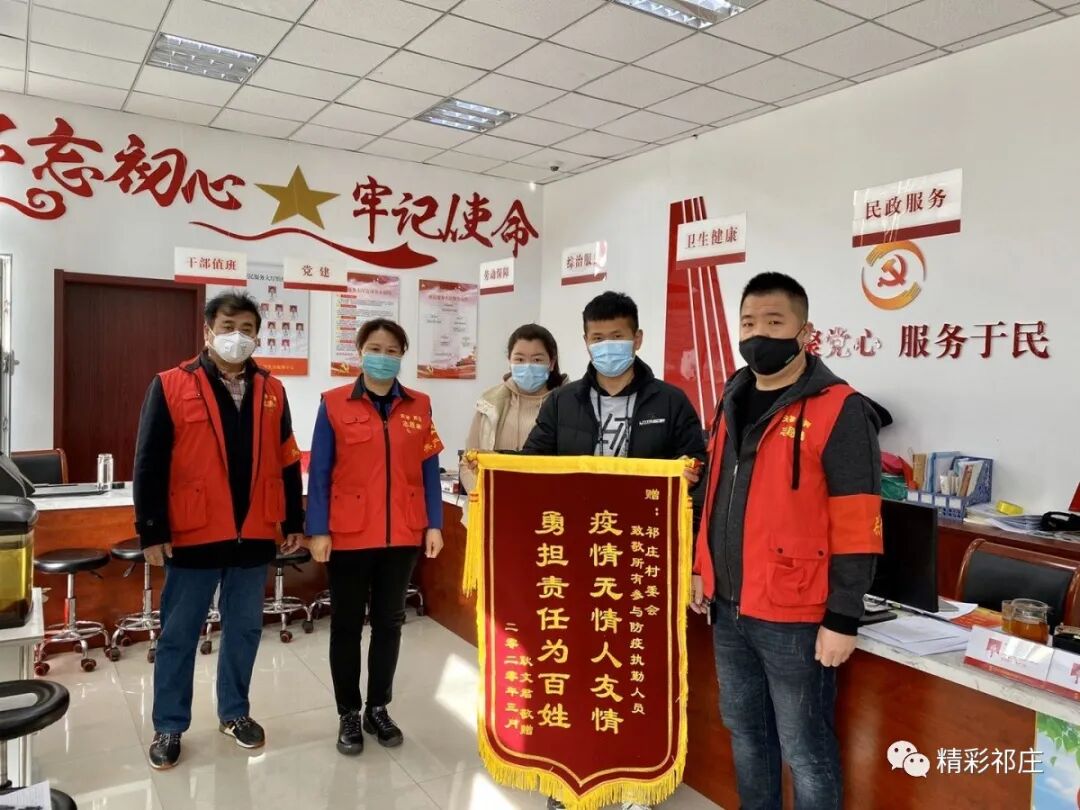 “感谢祁庄村各位志愿人员这段时间的照顾与无怨的付出,让我们切切实实感受到了贴心又温暖的服务。这段时间你们辛苦了,真是太感谢了!”近日,在祁庄村已解除居家隔离的住户们纷纷将锦旗送到村党群服务中心,向祁庄村所有参与疫情防控的工作人员表示诚挚谢意。