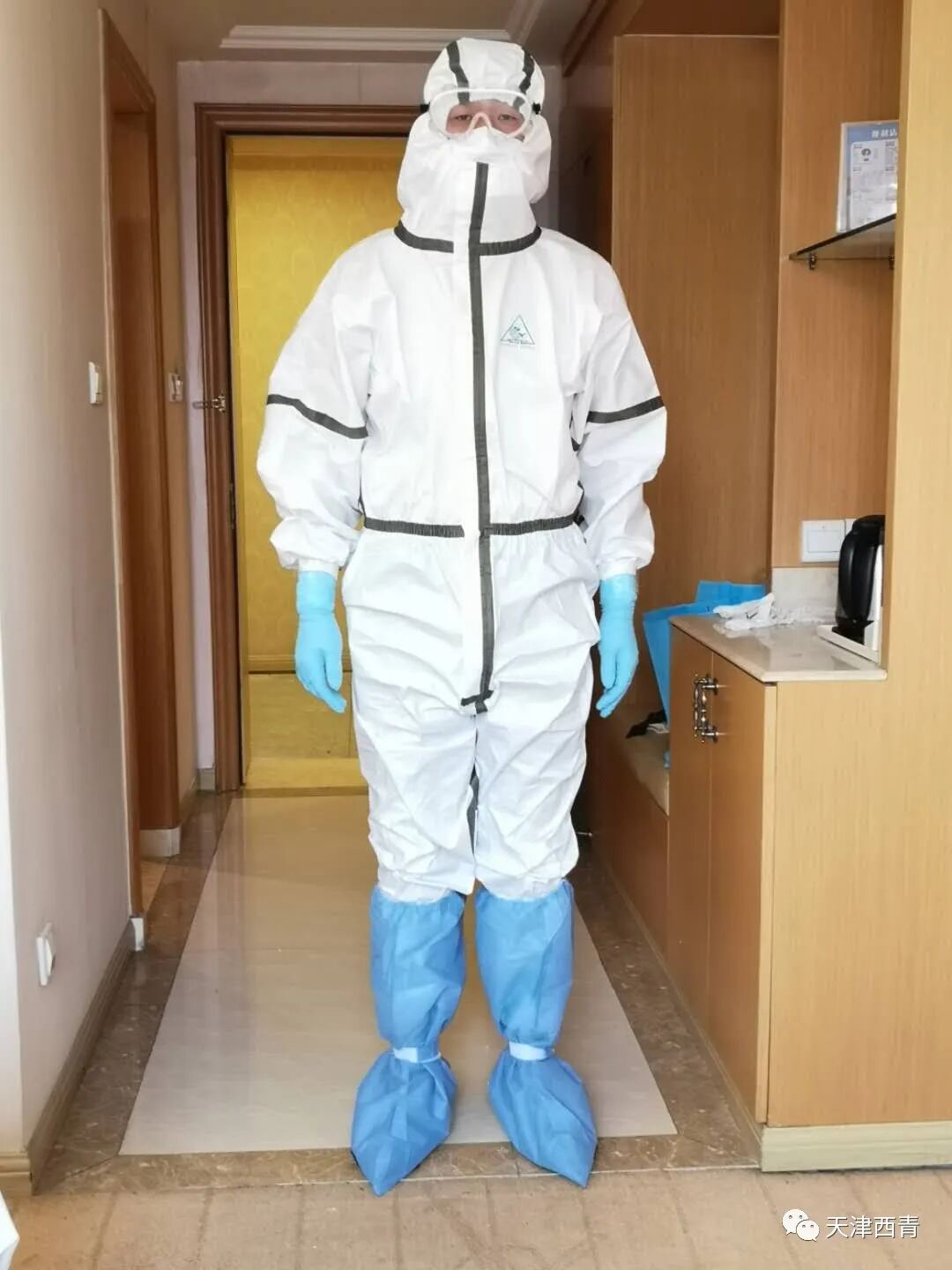 当接到组织号令要增派干部到区隔离观察点一线工作的时候,他当即坚定地提出要到抗击疫情的前线。初到隔离点接手的第一项工作就是每天观察隔离人员的饮食起居。胡茂晨因为身材高大, 隔离服穿上特别的费劲儿,每次穿上防护服进入隔离区持续工作近3个小时,任务完成后脱下防护服时,衣服已经被汗水浸透了。