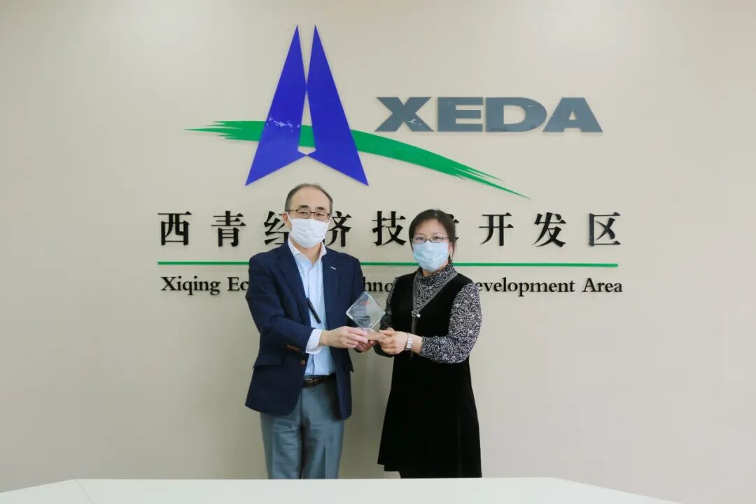 3月31日,电装(中国)投资有限公司天津西青分公司总经理岩崎真之一行专程代表电装集团来到天津市西青经济开发总公司,送来刻有“投我以桃,报之以李”的水晶杯和感谢信,对疫情发生以来,西青开发区为企业复工复产提供的帮助与指导表示衷心感谢。