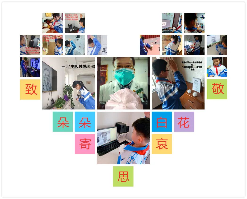 清明节是缅怀先人、烈士的节日。我们悼念先贤,缅怀先辈的丰功伟绩,时刻提醒自己学习他们的爱国精神。今年清明正值举国上下抗击新冠肺炎疫情、加紧复工复产的关键时期,为贯彻落实党和政府关于做好清明节前后疫情防控的部署要求,慎终如始抓好疫情防控工作,大力倡导文明、绿色、安全的祭扫新风尚,张家窝镇田丽小学的少先队员们开展了“清明敬英雄”网上祭扫活动,向新时代最美英雄致敬。 一、线上云升旗,共抒爱国情 升旗仪式 活动开始之前,少先队员们整齐地穿好校服,佩戴着鲜艳的红领巾,在网络上举行了一场“不一样”的升旗仪式-------线上升旗。在这场特殊的升旗仪式里,没有熟悉的操场,旁边也没有站立的同学,但每一名队员依然保持着挺立的站姿,面对国旗肃然起敬,唱起国歌,向国旗敬礼。 ![]() 那一个个庄严的敬礼,表达了中国新生代的力量与希望,汇聚的是对祖国深切的爱意! 国旗下讲话 ![]() 对于抗疫英雄来说,新冠肺炎疫情无疑是一场战斗。但是对于我们更多的人来说,这场疫情更像是一堂课。这堂课让孩子们成长了,小小年纪懂得了要团结一心,众志成城,懂得了这些英雄们才是我们最可爱的人,更加懂得了要热爱自己的祖国,珍惜自己的家园! 英雄虽已逝,精神永不眠 ——致最美“逆行者” 在抗击新型冠状病毒肺炎的战场上,令我们感动与钦佩的,是那些站在第一线的广大医护人员。他们是在战场上奋不顾身用生命与死神搏杀的真正的战士。 李文亮医生以身殉职为什么让我们潸然泪下?是因为他作为第一线的医生,最先拉响了新冠肺炎的警报,他坚持医者仁心、治病救人的信念,奋不顾身地工作在医生职业的第一线,并因此感染,壮烈殉职。田丽小学可爱的少先队员们采用了各种各样的方式向以李文亮为代表的牺牲的抗“疫”英烈和奋斗在一线的人民英雄致敬。 清明节 白花朵朵寄哀思 ![]() 孩子们把亲手制作的小白花献给“天使”,致敬新时代英雄。 2、新时代的英雄——绘画作品 ![]() 3、奋斗在一线的人民英雄——绘画作品 ![]() 从孩子们惟妙惟肖的作品中可以看出英雄的样子已经深深地印在他们的心中,挥之不去。 4、感恩有你,山河无恙,人间皆安——手抄报作品 ![]() 5、小小作品传祝福——书法、手工作品 ![]() 6、听我说谢谢你——写给英雄的话 ![]() 7、感谢有你,世界更美丽——视频作品 世上没有从天而降的英雄,只有挺身而出的凡人,这就是咱们新时代最可爱的人。所以,我们要感谢、感恩新时代最可爱的人——咱们的医护人员。在疫情袭来的时候,医护人员是白衣天使,为所有人带来希望。感恩有你,愿山河无恙,人间皆安! 三、缅怀先烈,精神永存 各个时期的革命烈士都是时代的先锋、民族的脊梁、祖国的功臣,他们的精神光照千秋,永垂青史。我们要弘扬先烈的崇高精神,革命传统要牢牢记在心头,以此激励我们、警示我们,要珍惜革命先烈用鲜血和生命换来的今天社会安定祥和、经济持续增长、人民安居乐业的美好生活。 革命先烈事迹 ![]() ![]() ![]() ![]() 感恩 我们今天的幸福生活是先烈付出自己的鲜血、生命换来的。 激励 学习他们这种大无畏精神和正义的品质,让我们在生活中也敢于勇往直前,正气凛然。 鞭策 先烈们为了我们付出了很多,我们更应该珍惜这来之不易的生活,努力做好自己分内的事。 我们应当树立远大的理想,时刻牢记自己是革命事业的接班人,是祖国和民族的希望。为了国家的强盛,民族的振兴,我们应当勤奋学习,学好本领,练好身体,时刻准备着为共产主义事业而奋斗,一刻也不要忘记时代赋予自己的使命和责任。 |