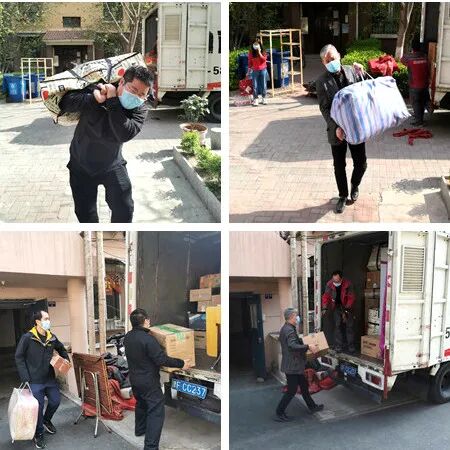 4月1日中午,西青医院组织4名志愿者和卫健委3名志愿者利用一下午的时间,一起帮助西青医院内分泌科驰援湖北医生田秀标完成了搬家。