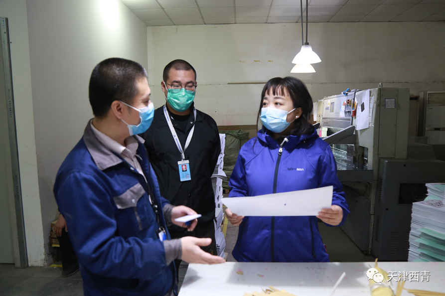 联合督导组深入天津鹏兴顺印刷有限公司、天津正合精密印刷有限公司、天津灵轩时代文化传播有限公司等印刷企业和书店,对照《天津市新冠肺炎期间印刷企业生产经营服务防控指南》、《天津市新冠肺炎期间书店经营服务防控指南》要求,组织开展督查+服务,通过随机抽取、实地查看、查阅台账、现场反馈、与企业负责人面对面交流相结合的方式进行,助推印刷企业和书店有序健康生产经营。督导组全面了解企业复工复产期间安全防控的开展情况,并详细了解企业人员到位情况、相关防护用品、重点区域防控措施落实情况,企业内消防设施、设备运行使用等情况,并与企业负责人交流了解现阶段经营中遇到的困难和问题,向企业和书店宣讲天津市和西青区服务中小微企业和个体工商户复工复产复业系列政策。
