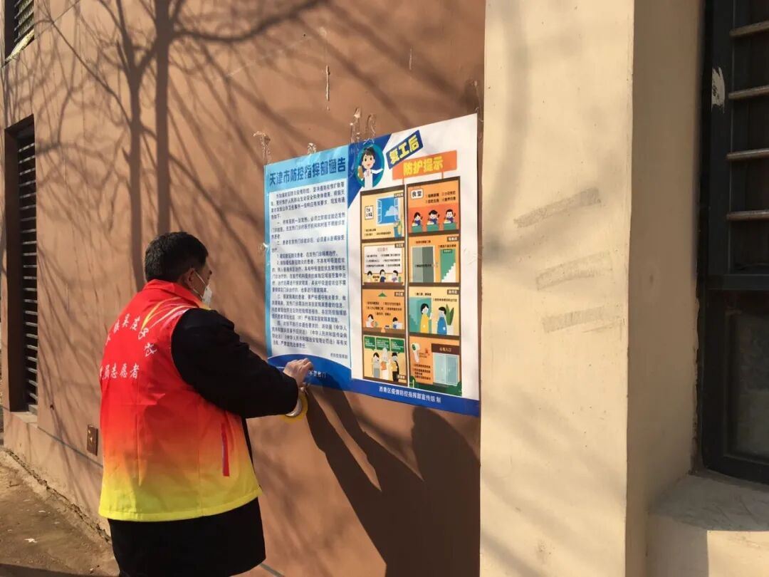 宣传落实到位。成立疫情防控工作小组后,“两委”班子成员及后勤工作人员及时入户对村民发放《致全区广大人民群众的一封信》,每日在村各个微信群及楼栋群发送相关通知及宣传材料,向村民大力宣传防疫信息。在国兴佳园小区超市、底商、药店门口悬挂张贴横幅、布标,并在小区楼门口张贴《致全区广大群众的一封信》、明白纸、《致武汉返津人员的一封信》和《防控注意事项》等防疫材料,保证宣传落实到位。