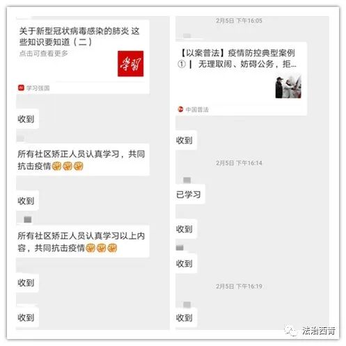 二是紧急响应到位。第一时间转发疫情通告及防控要点,取消集中教育,暂停日常报到、社区服务等活动,场外办理社区矫正对象宣告入矫、解除矫正和刑满释放人员衔接工作。