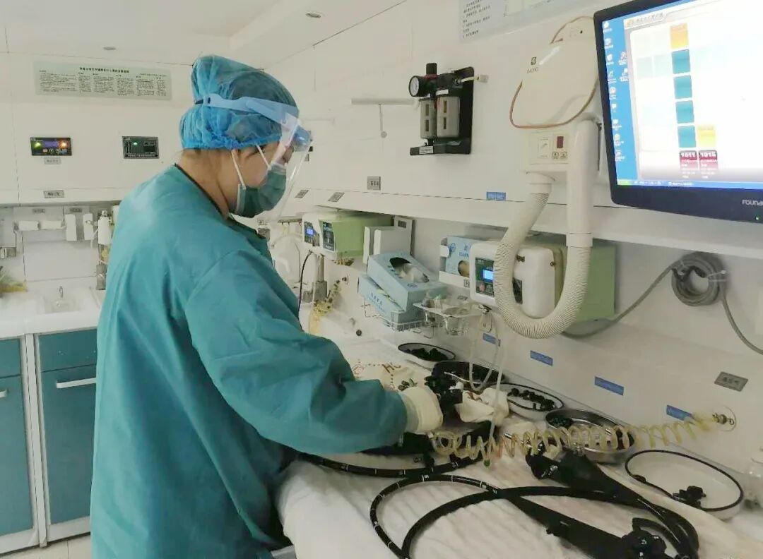 消毒防疫确保100%无死角。“消毒防控”是内镜室投入精力最大的“重点战役”。对内镜检查的患者使用一次性床单、每位患者检查结束后用含氯消毒剂拖地并擦拭检查床、每次检查用酒精湿巾擦拭内镜主机和操作台及门把手等、每天紫外线照射空气消毒、同时对所有使用的内镜实行高水平消毒或灭菌。此外,每天两次对患者复苏区用含氯消毒剂拖地、紫外线空气消毒严格实施操作、医生和配合护士采取二级防护措施,进一步加强手卫生等。