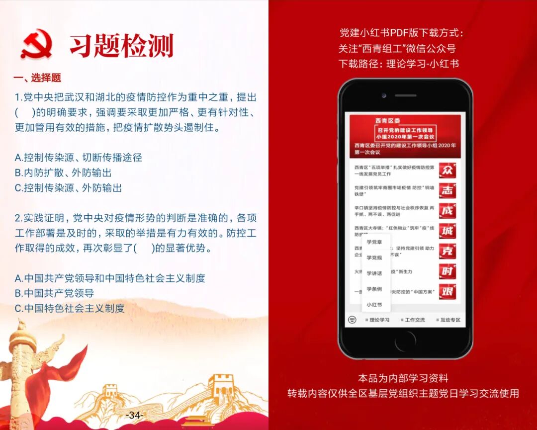 《西青党建·小红书》以“传播党建理论、反映工作动态、展示组工成果、服务党员学习”为宗旨,采取全新的形式和载体,让基层党支部和广大党员的学习上通“天”线,下接“地”气,随时把握时事热点、掌握党建动态,推动党员学习更加便捷,基层组织生活更加规范。
