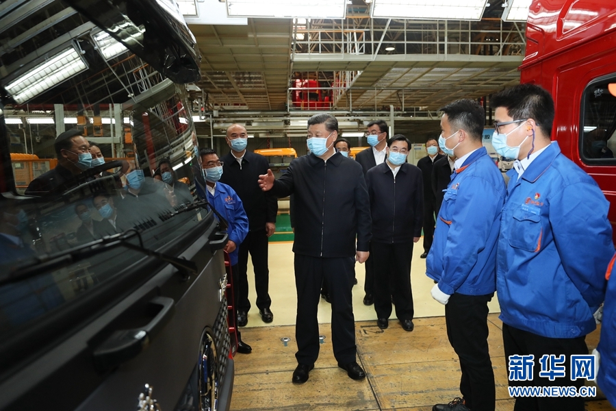 4月20日至23日,中共中央总书记、国家主席、中央军委主席习近平在陕西考察。这是4月22日,习近平在陕西汽车控股集团有限公司总装车间察看生产线,了解产品研发、生产、销售和复工复产情况。 新华社记者 谢环驰 摄