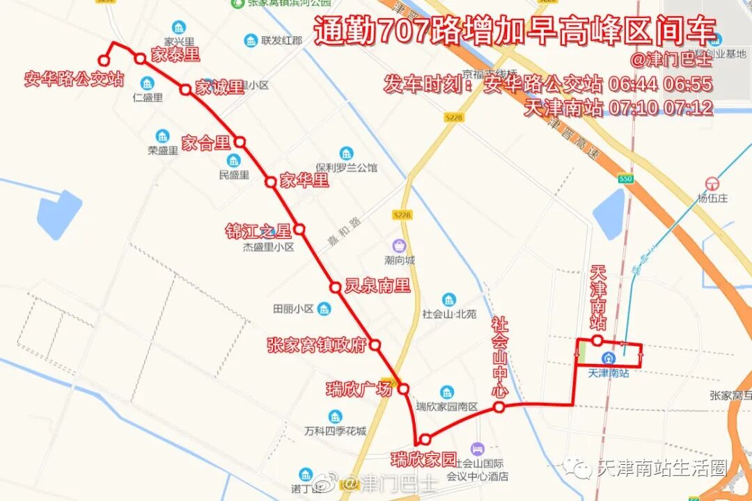 据津门巴士微博报道: 通勤707路开通早高峰区间车,接驳地铁三号线。 该线路由“安华路公交站”始发,途径张家窝各车站,终点在“天津南站公交站”。每日早晨6:44和6:55发车两班,7:10和7:12由南站回发。 新707通勤线路图 ![]() 原通勤707大圈车仍保留存在,大圈班次发车时刻为:安华路公交站发7:22、7:31、15:08、15:23;海光寺公交站发8:49、9:02、17:11、17:21。 原707通勤线路图 ![]() 以上通勤707路班次,老年卡和残疾人卡均无效。 707线路图 ![]() |