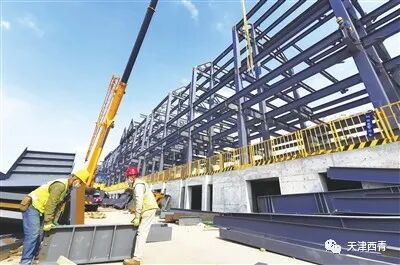 记者在地块二的施工现场看到,工人们身穿安全反光背心,手拿作业工具,在高15米的钢结构架上安装钢结构梁柱、紧固高强螺栓、焊接钢结构配件,在400米长的地库砌砖砌筑、混凝土导墙……汪春青说:“项目整体结构以装配式钢结构为主,构建成两层和三层建筑,同时配备近30000平方米的封闭式地下停车库。采用预制装配化建造,即梁、柱等主要构件均为工厂预制,现场进行装配,与传统建筑相比,钢结构装配式建筑具有建设速度快、施工过程环保等优势。”