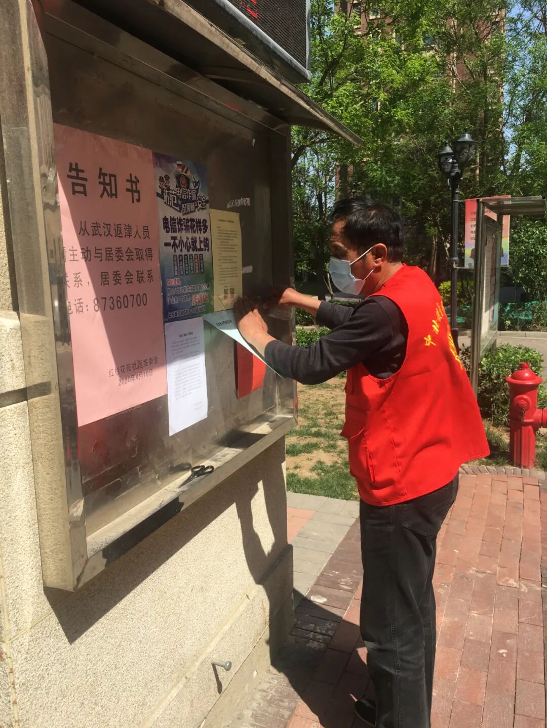 王大爷平时上午上班,因此每次都是下午急急忙忙地赶到社区报到,进行门岗值守、楼道消杀、张贴通告、为隔离户送物资等志愿服务。