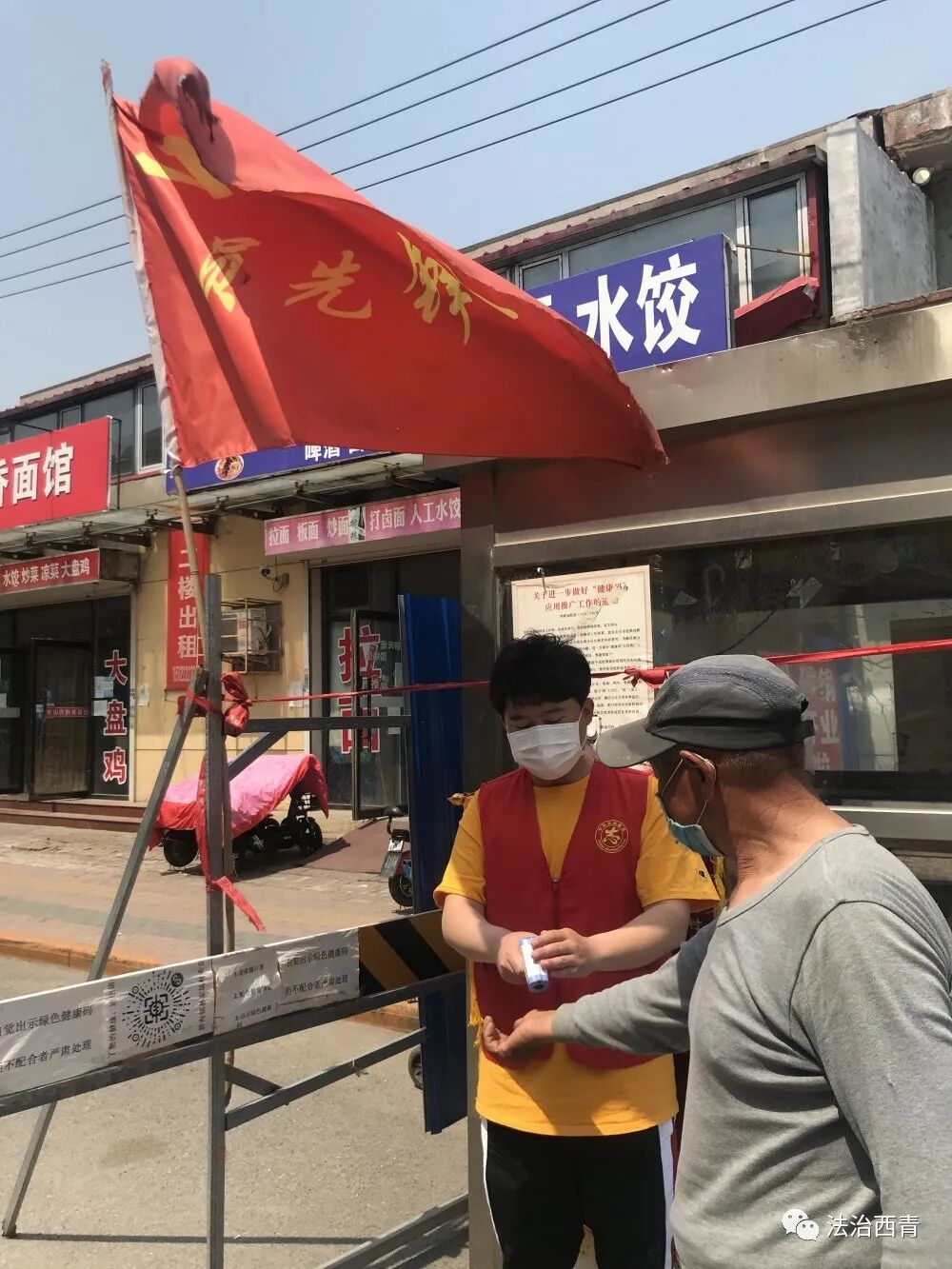 自战“疫”防控以来,田校通一直同党员先锋队并肩战斗在一起。身穿印有“走在前 做表率”字样的红马甲,臂戴“共产党员”袖标,他们舍小家顾大家,在危难时刻冲在前,英勇无畏,倾情付出,用生命守护着万家灯火及人民的安宁,成为津城最靓丽的红色风景线。田校通被身边这些鲜活的战“疫”感人故事深深的感染着鼓舞着,在鲜红党旗的感召下,也渴望成为一名光荣的中国共产党党员。在值守中,他积极向党员学习,向党员看齐,以党员的标准严格要求自己。4月中旬,田校通向党组织递交了神圣的入党申请书,积极向党组织靠拢,请求党组织对其考验。至今田校通仍坚守在社区战“疫”一线,用实际行动践行着“疫情不退,我不退”入党申请的铮铮誓言。