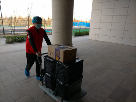 全国人民共同抗疫,国内疫情防控形势日趋向好,国外疫情却出现了井喷式爆发,更多境外人员梦想回到祖国的怀抱。为响应区委、区政府发出的机关干部深入社区一线参与入境人员排查工作的号召,张老师也参加了李七庄街的志愿执勤,并在岗位中被紧急调遣到西青区第三观察点参与到为入境人员进行后勤生活保障的服务中。由于工作的特殊性和危险性,他放弃了回家,放弃了与父母孩子的团聚,每天二十四小时坚守岗位。从第一个隔离期就开始上岗,坚守着每位隔离人员的十四天隔离期。这项工作既危险又艰巨,工作中张老师和他的队友们要配合医务人员帮助隔离人员搬行李并安排他们的住宿,由于航班不同,只要境外输入人员被送到观察点,他们就要配合医务人员行动起来,不管是白天还是黑夜。多少次午夜凌晨,随来随到,保障隔离人员的安全入住。除此之外他们还要负责区域内九十余人全天饮食的配送,并从十楼到四楼把所有隔离人员的生活垃圾消杀装袋徒步从安全通道搬到一楼,每次都要徒步往返一到十楼之间好几次。观察点的隔离人员都是具有潜在病毒携带的可能性,因此每次进入隔离区的人员都是要穿好隔离防护服的,这样才能保证工作人员的安全,然而在密闭的隔离服里会使人的呼吸较为困难,再带上防护镜让人更加头晕目眩,就这样每次送餐和垃圾清理之后,工作人员都会累得全身是汗。每天三餐,三次消杀和卫生清理让张老师和其他工作人员身体万分疲惫。他们不只干着这样的体力活,当隔离观察人员出现情绪问题时,他们还要做心理疏导工作,耐心地疏导隔离人员的情绪,为他们讲解疫情的严重性以及隔离的重要性,鼓励他们坚持度过隔离期,早日安全回家。