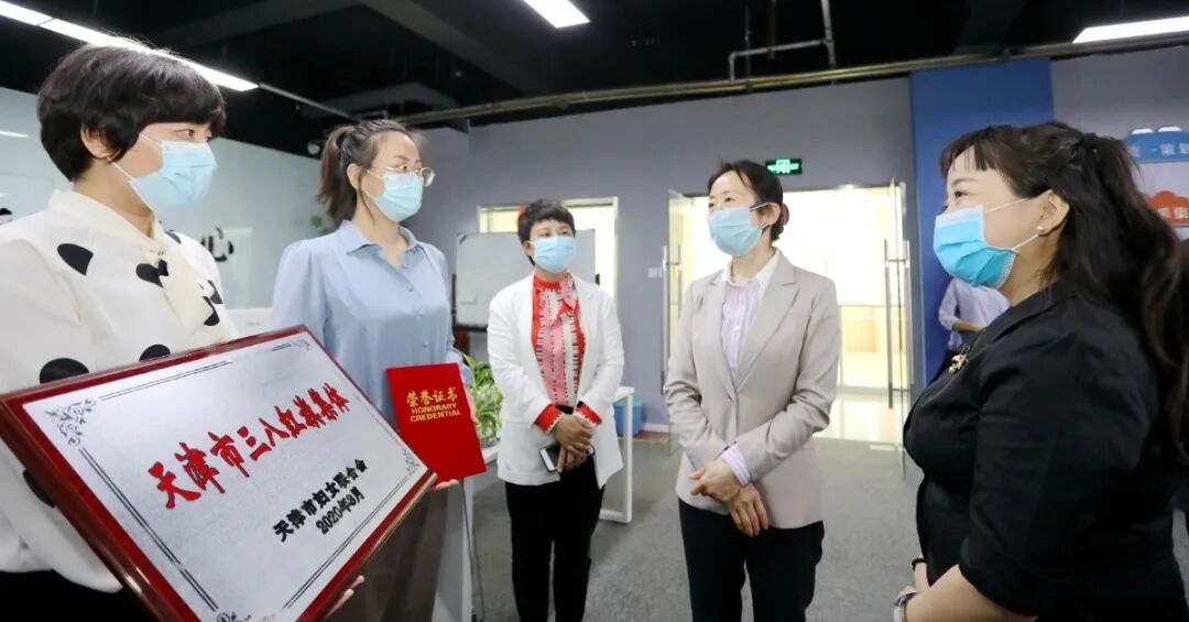 为表彰在新冠肺炎疫情防控工作中作出突出贡献的女性先进个人和集体,5月12日下午,天津市妇联副主席林洁深入西青区为获得天津市三八红旗手、天津市三八红旗集体荣誉的个人和单位颁发奖牌、证书,为她们带来了特别的颁奖“典礼”。
