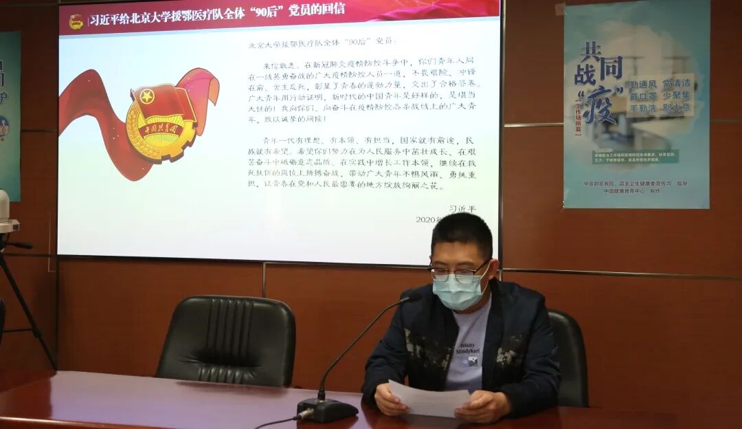 活动中,西青区青马工程学员李金广和杨晨分别领学了习近平总书记给北京大学援鄂医疗队全体“90后”党员回信和五四青年节对广大青年的寄语精神,活动还采取腾讯会议的形式现场连线3名年年代表畅谈学习体会。